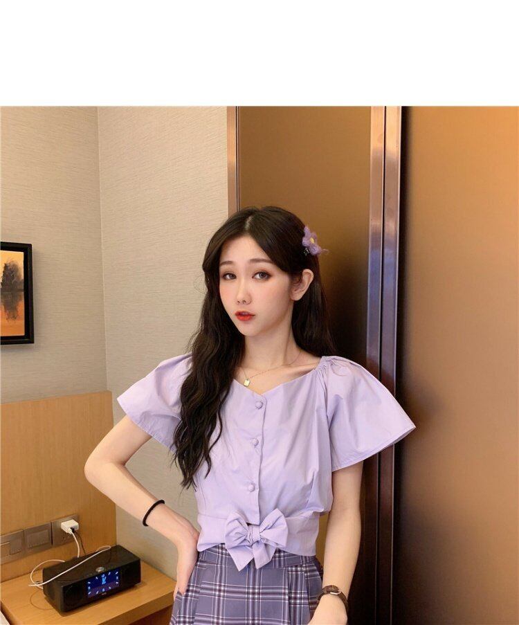スタイルカラーシャツ レディースショート ショート丈 ミニ ミニ丈トップス かわいい 可愛い ガーリー 大人可愛い 大人かわいい フェミニン 大人ガーリー パープル スクウェア スクエア 女性 レディース ガーリー33682496837 | nice import1