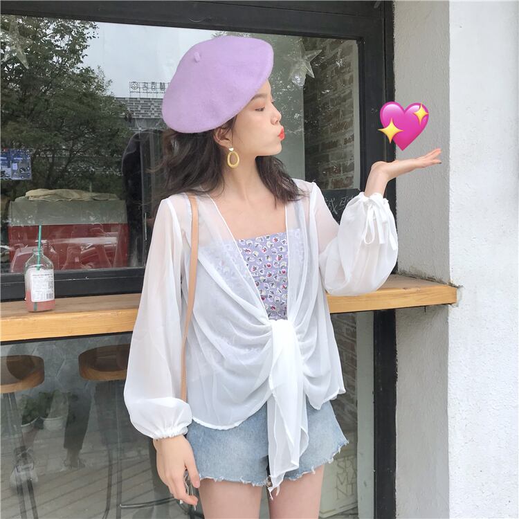 コート 薄手ホワイト 白トップス レディースシフォンシャツロング マキシ ロング丈 マキシ丈カーディガン 上着ルーズ マキシロング丈 ブラウス 女性 レディース ガーリー18206364577 | nice import1