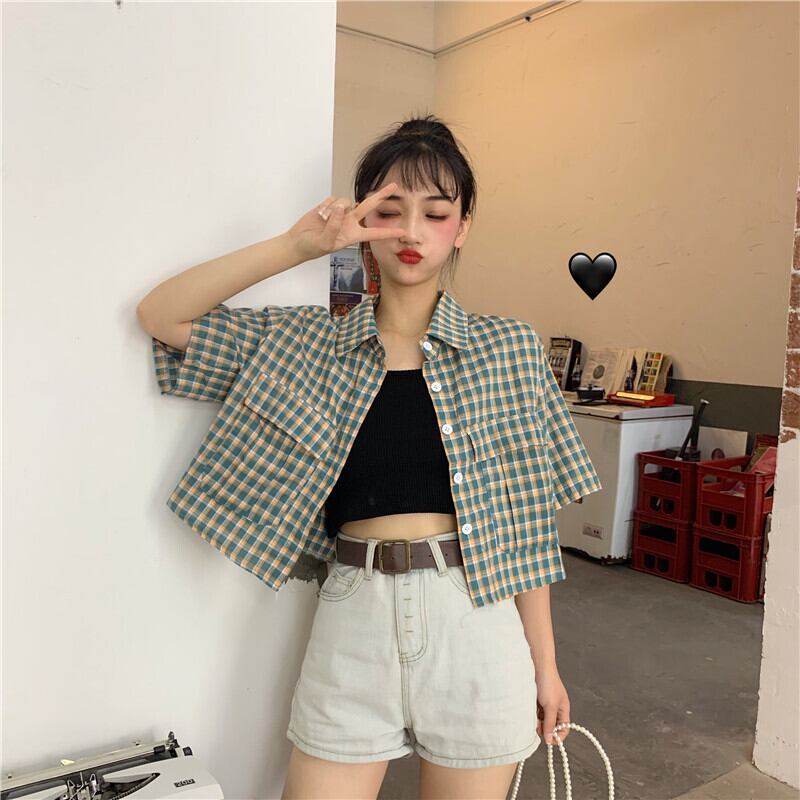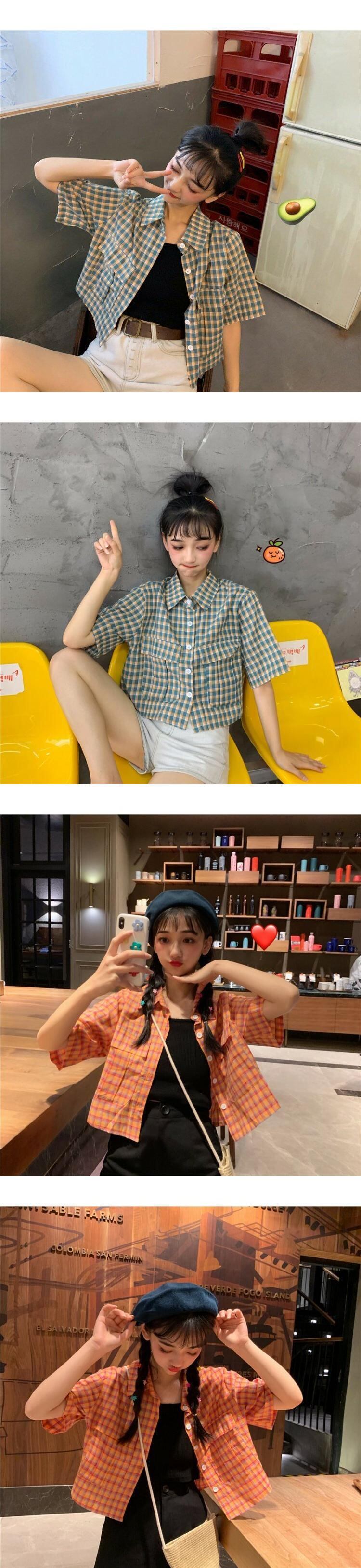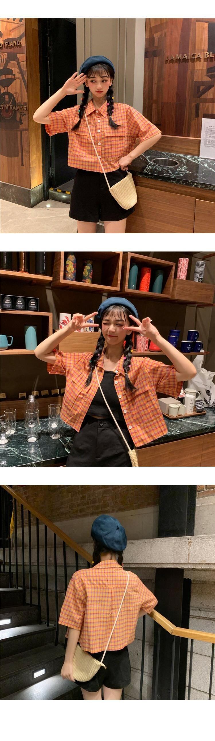 スタンダード格子柄 チェックショート ショート丈 ミニ ミニ丈シャツ ルーズスタイルジャケット 上着 コート レトロ パープル 女性 レディース ガーリー12785387622 | nice import1