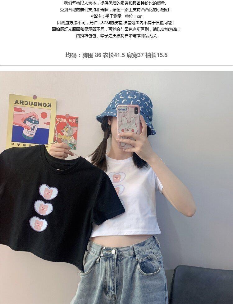 ホワイト 白Tシャツ レディースショート ショート丈 ミニ ミニ丈ルーズプリント柄クロップトップ トップス 半袖 半そで ハーフスリーブ 女性 レディース ガーリー63580450621 | nice import1