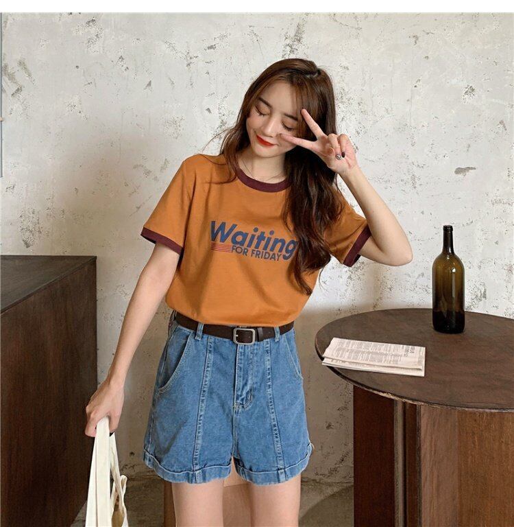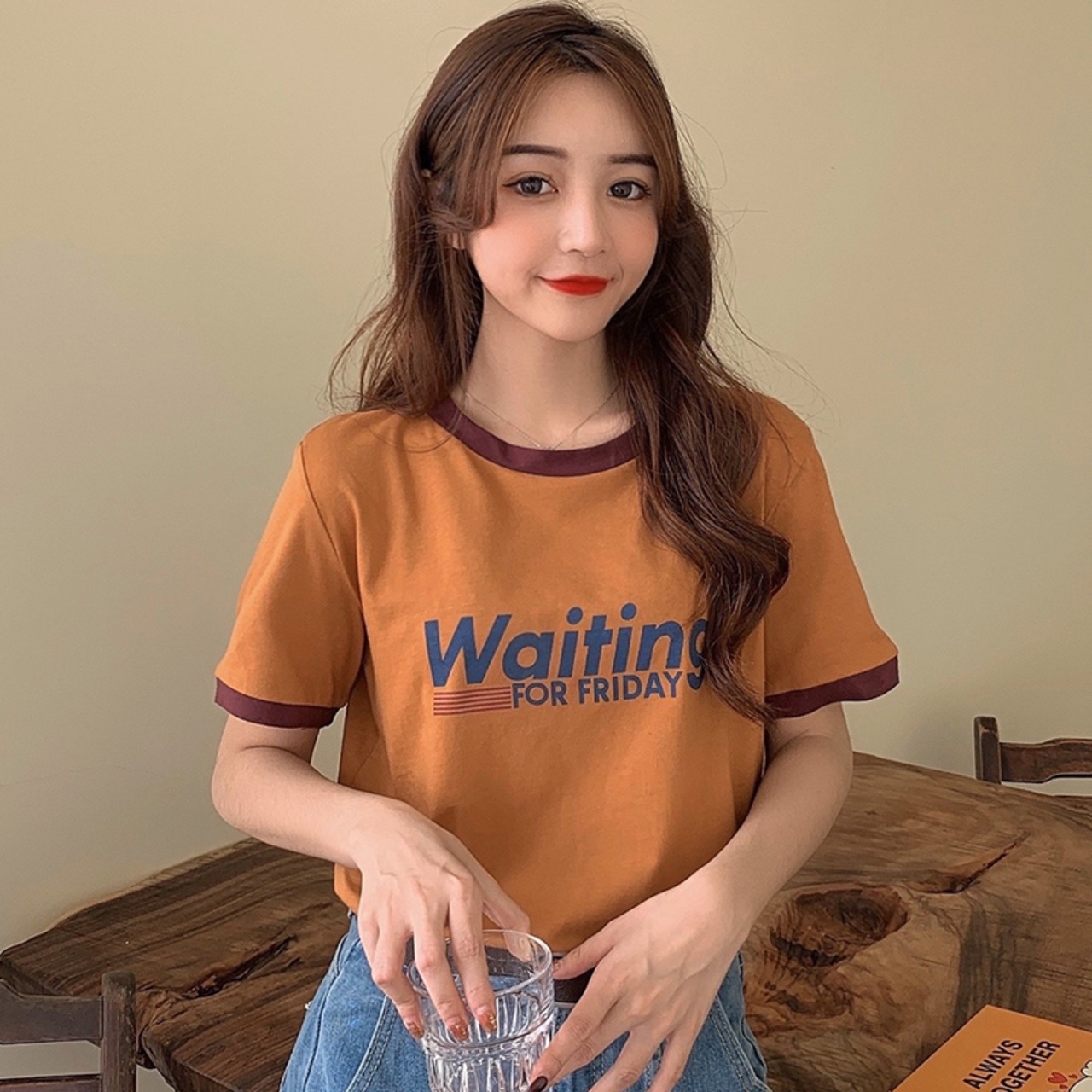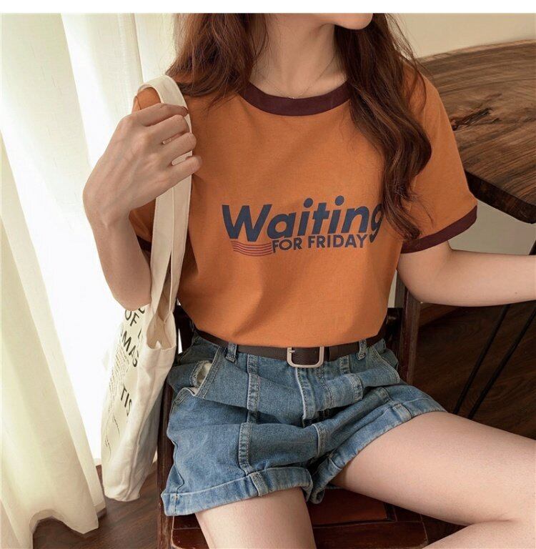 スリム薄手ルーズ半袖 半そでスリーブ 袖トップス プリント柄ラウンドネックTシャツ レディース ショート ショート丈 ミニ ミニ丈 ハーフスリーブ 女性 レディース ガーリー41189013096 | nice import1