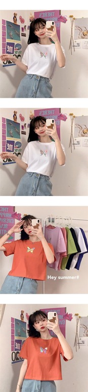 ホワイト 白ショート ショート丈 ミニ ミニ丈トップス バタフライ 蝶々 ちょうちょ アゲハプリント柄スタンダードTシャツ シャツ レトロ パープル 女性 レディース ガーリー82956641874 | nice import1