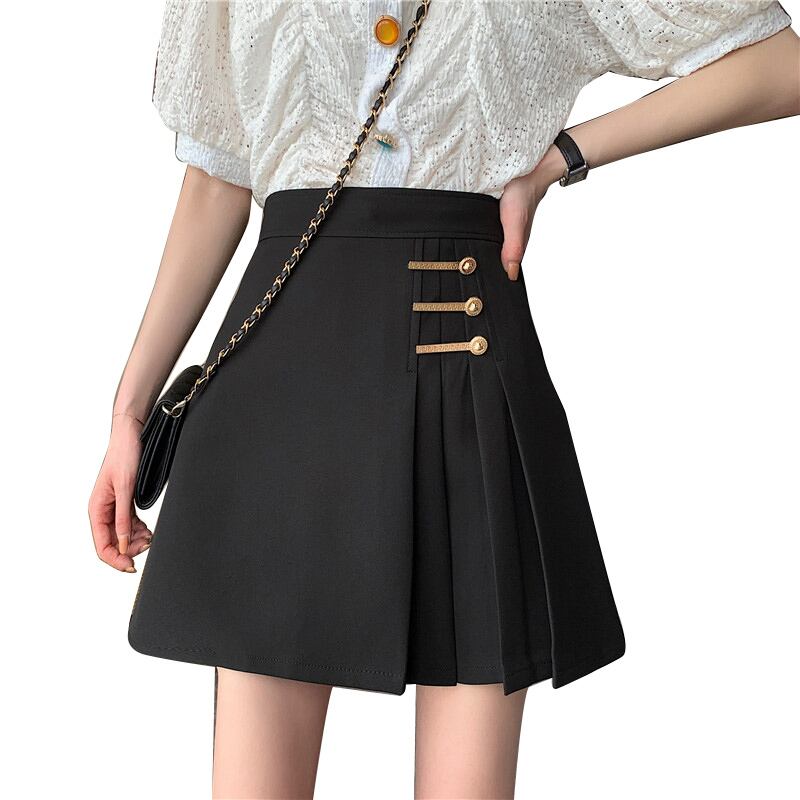 ブラック 黒ハイウエストウエストプリーツスカート メタルバックルショート ショート丈 ミニ ミニ丈Aライン ハイウェスト 女性 レディース ガーリー84960173608 | nice import1