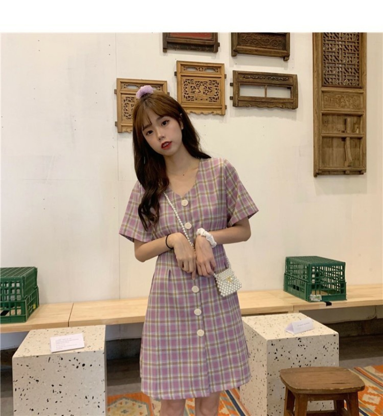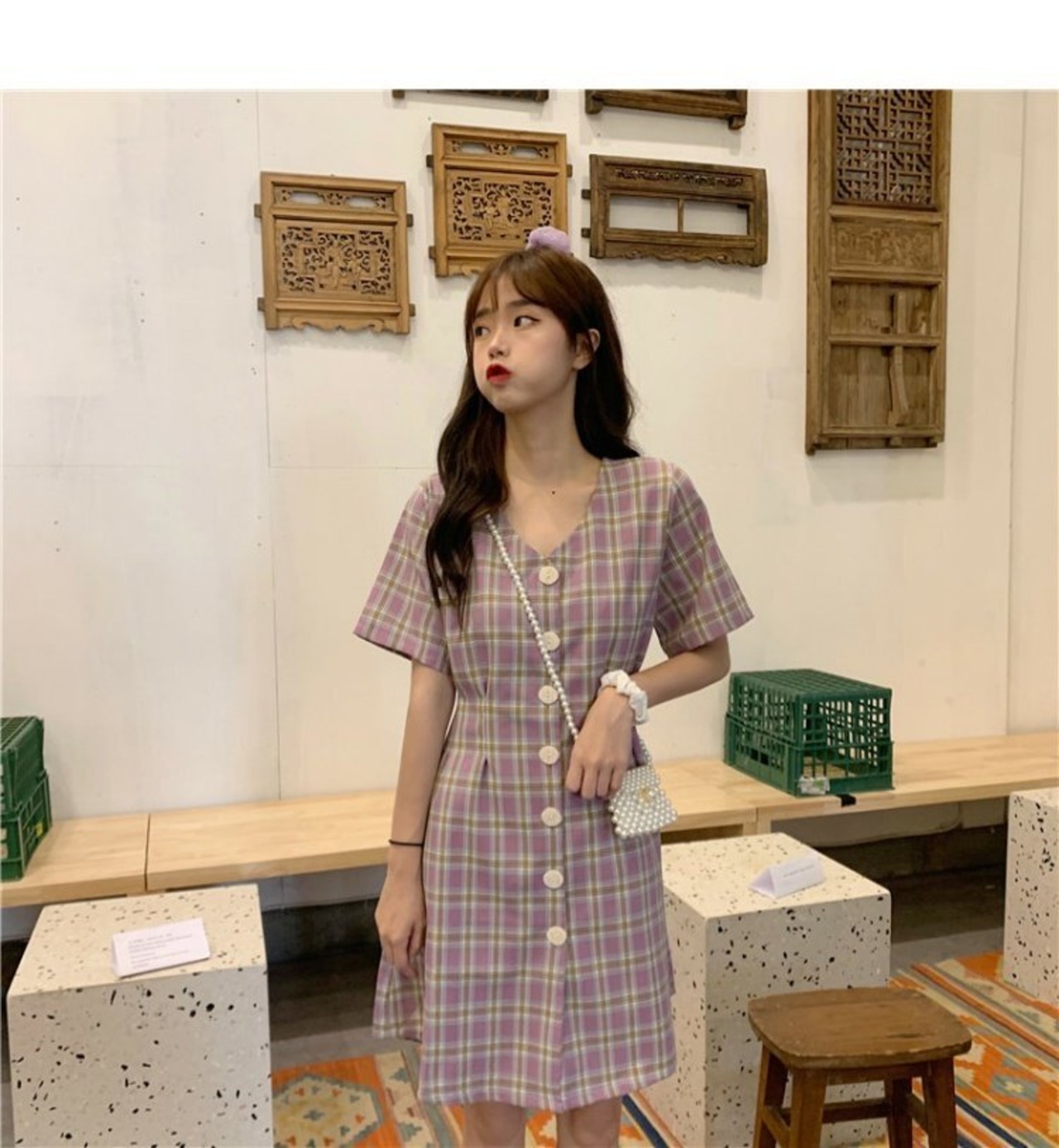 色:紫の格子縞,赤い箱