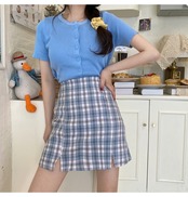 Aラインスカート ハイウエストウエストブルー 青格子柄 チェックドレス ワンピース薄手ショート ショート丈 ミニ ミニ丈 ハイウェスト 女性 レディース ガーリー70554436688 | nice import1