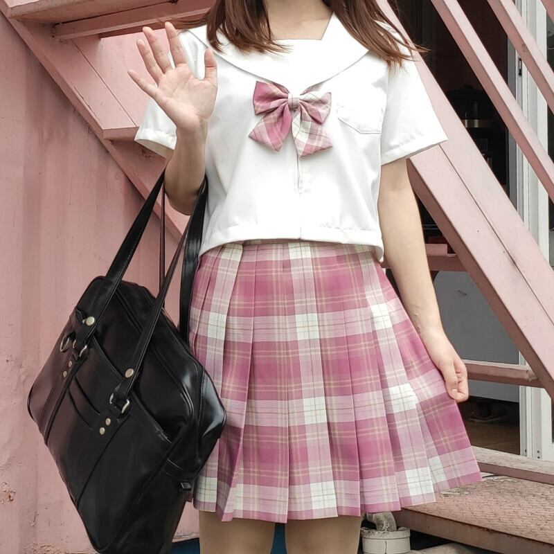 色:格子縞のスカートのシングルピース,蝶ネクタイワンピース,シャツ一枚