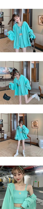 色:グリーンジャケット,紫のコート,グリーンキャミソール,パープルキャミソール,グリーンショートパンツ,パープルショーツ