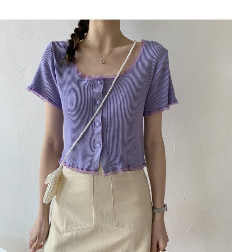レディースニットカーディガン 上着薄手ジャケット 上着 コートショート ショート丈 ミニ ミニ丈 半袖 半そで ハーフスリーブ パープル 女性 レディース ガーリー91002099708 | nice import1