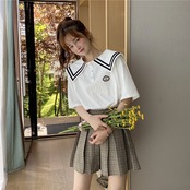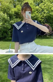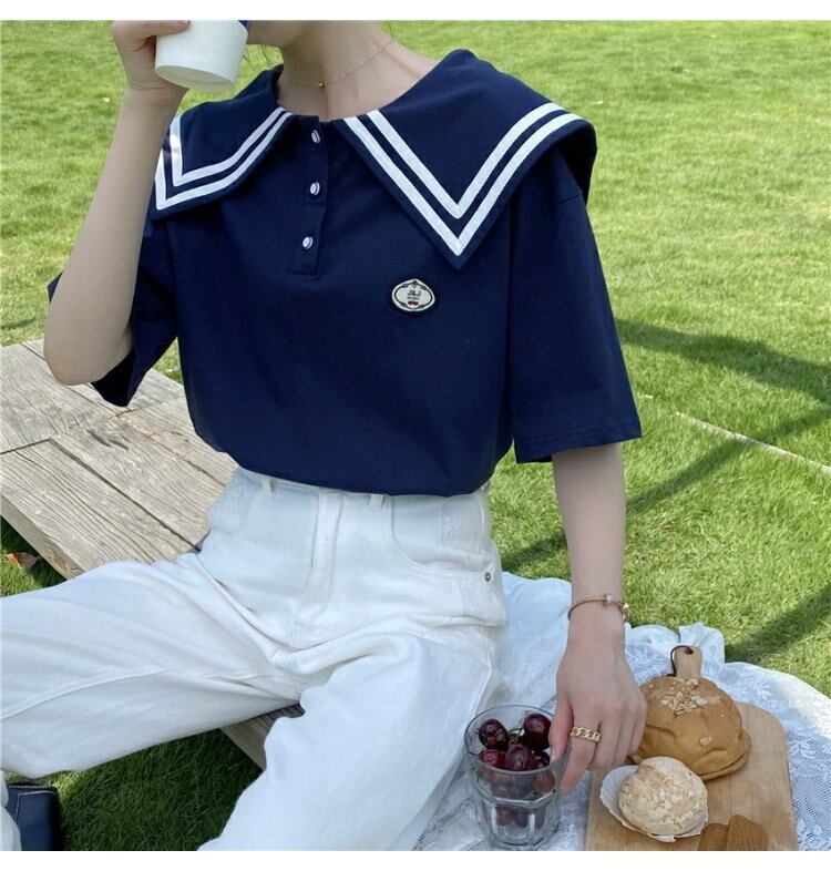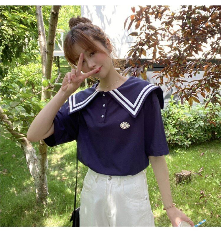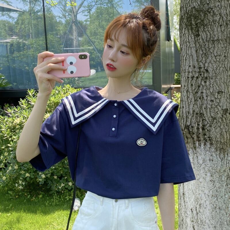 ブルー 青Tシャツ シャツ ルーズネイビー 紺色スタイルトップス ショート ショート丈 ミニ ミニ丈 かわいい 可愛い ガーリー 大人可愛い 大人かわいい フェミニン 大人ガーリー 女性 レディース ガーリー30864870087 | nice import1