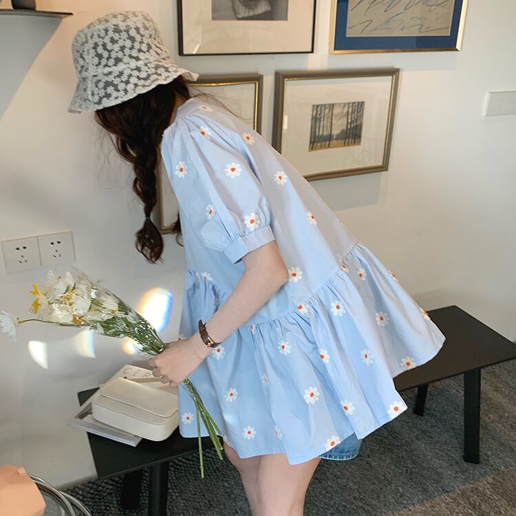 プリント柄シャツ レディースドレス ワンピースブルー 青 かわいい 可愛い ガーリー 大人可愛い 大人かわいい フェミニン 大人ガーリー 女性 レディース ガーリー52401280430 | nice import1