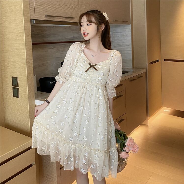 リボンカラースリーブ 袖花柄 お花 フラワードレス ワンピース かわいい 可愛い ガーリー 大人可愛い 大人かわいい フェミニン 大人ガーリー スクウェア スクエア 女性 レディース ゆめかわ82736354321 | nice import1