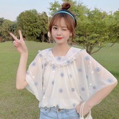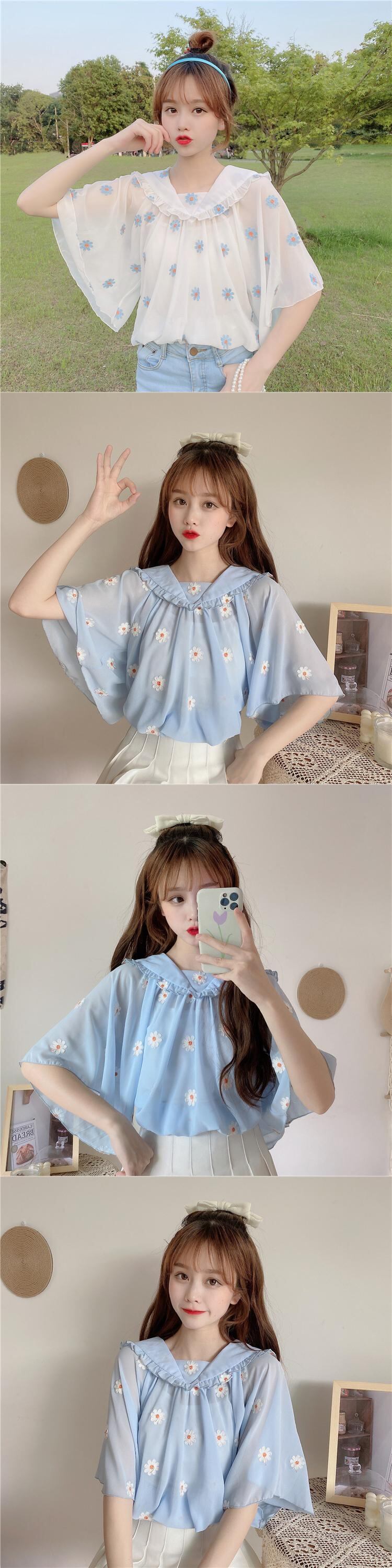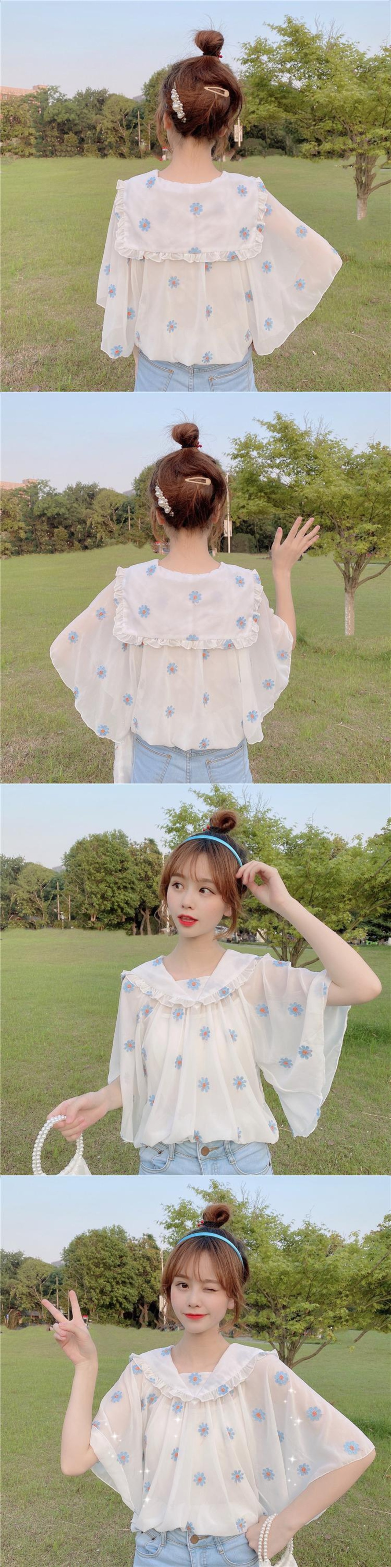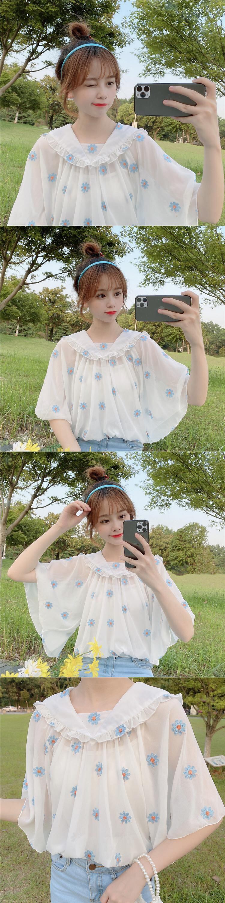 カラースリーブ 袖シャツ 刺繍シフォントップス スタイル レッド 赤 かわいい 可愛い ガーリー 大人可愛い 大人かわいい フェミニン 大人ガーリー 女性 レディース ゆめかわ81032404251 | nice import1