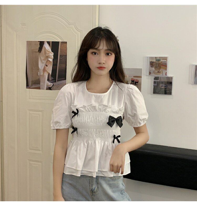 ラウンドネックスリーブ 袖ウエスト半袖 半そでレディースリボントップス ショート ショート丈 ミニ ミニ丈 ハーフスリーブ かわいい 可愛い ガーリー 大人可愛い 大人かわいい フェミニン 大人ガーリー 女性 レディース ガーリー38245108417 | nice import1