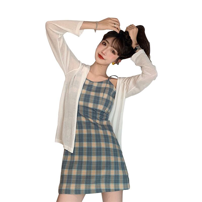 色:格子縞のスリング,日焼け防止カーディガン