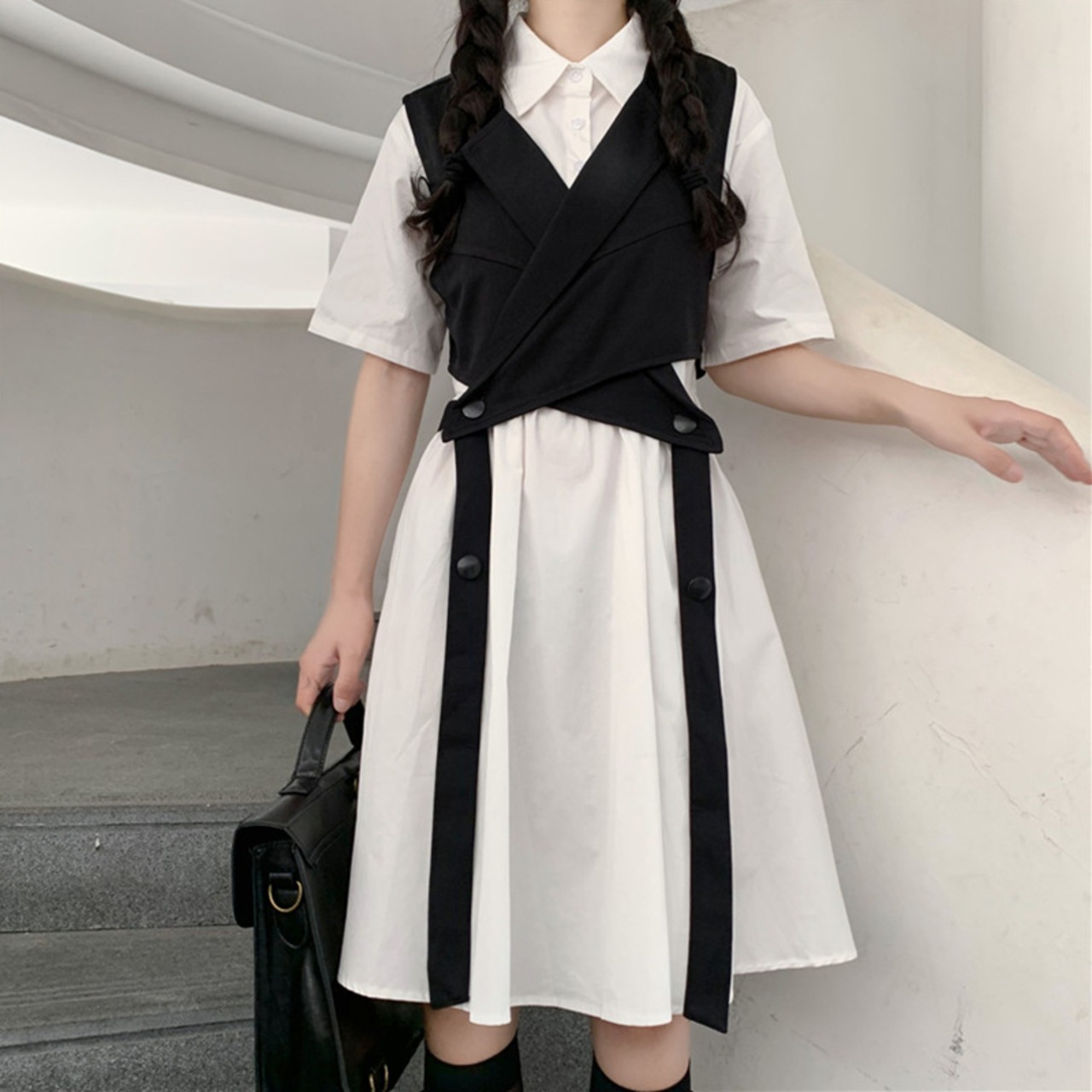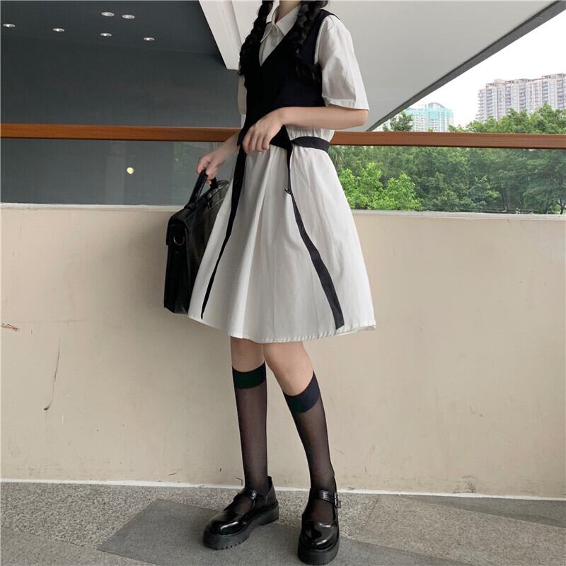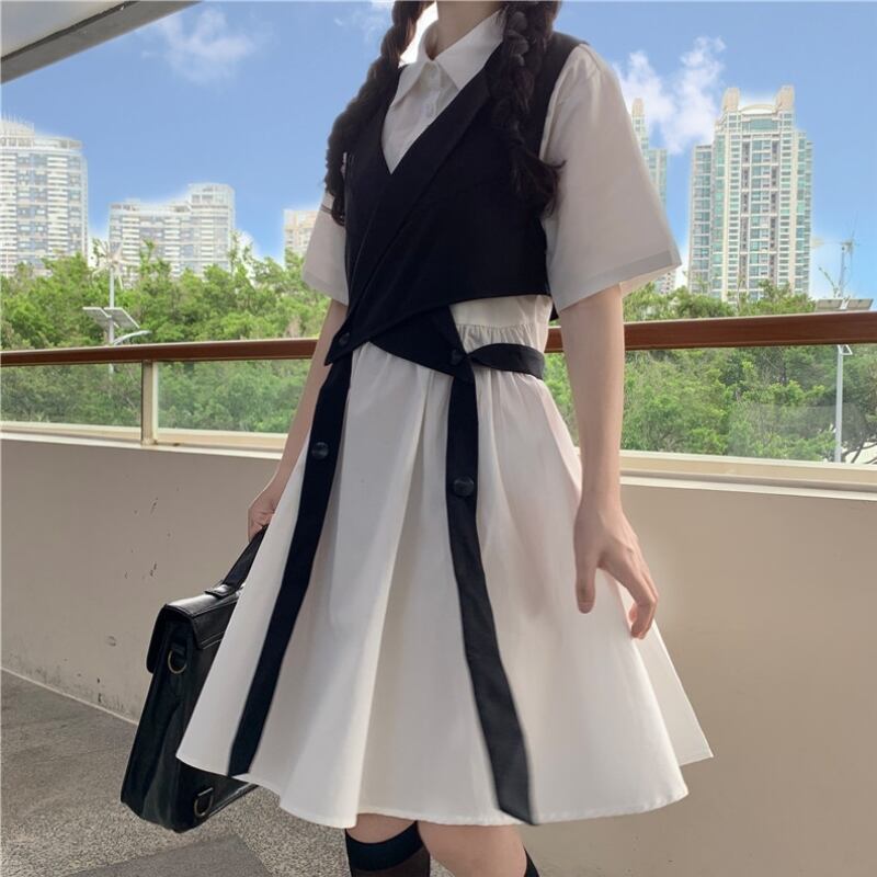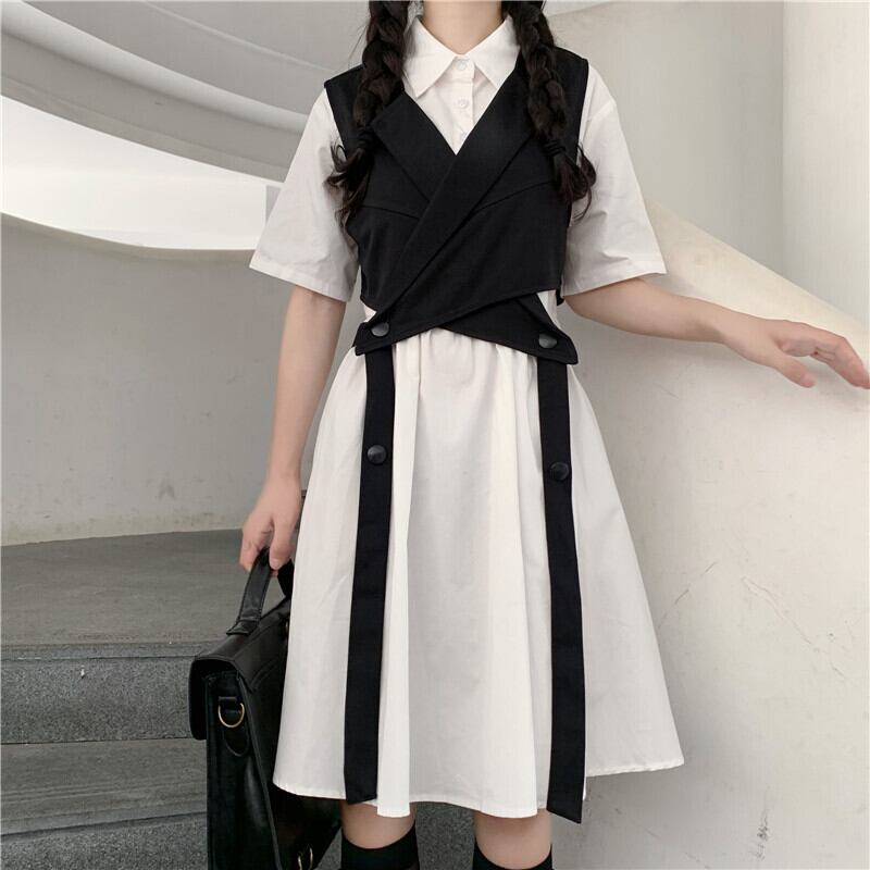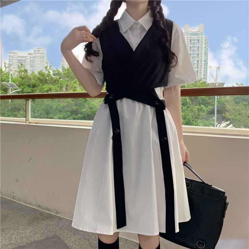 色:レースアップスーツチョッキワンピース,白いワンピース