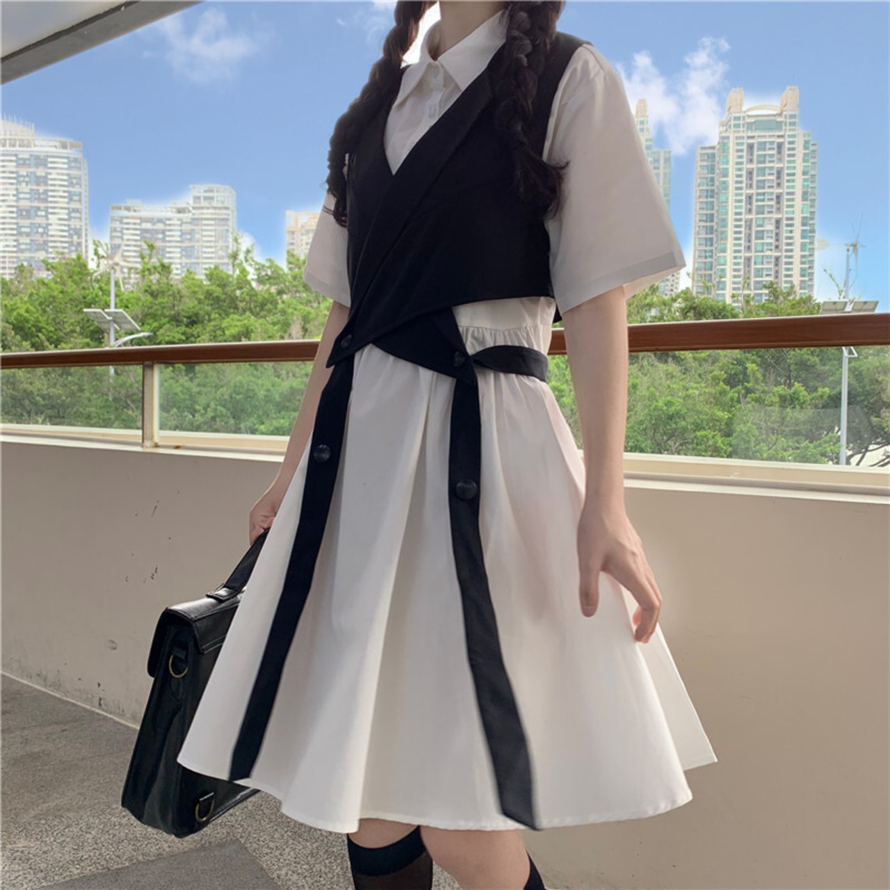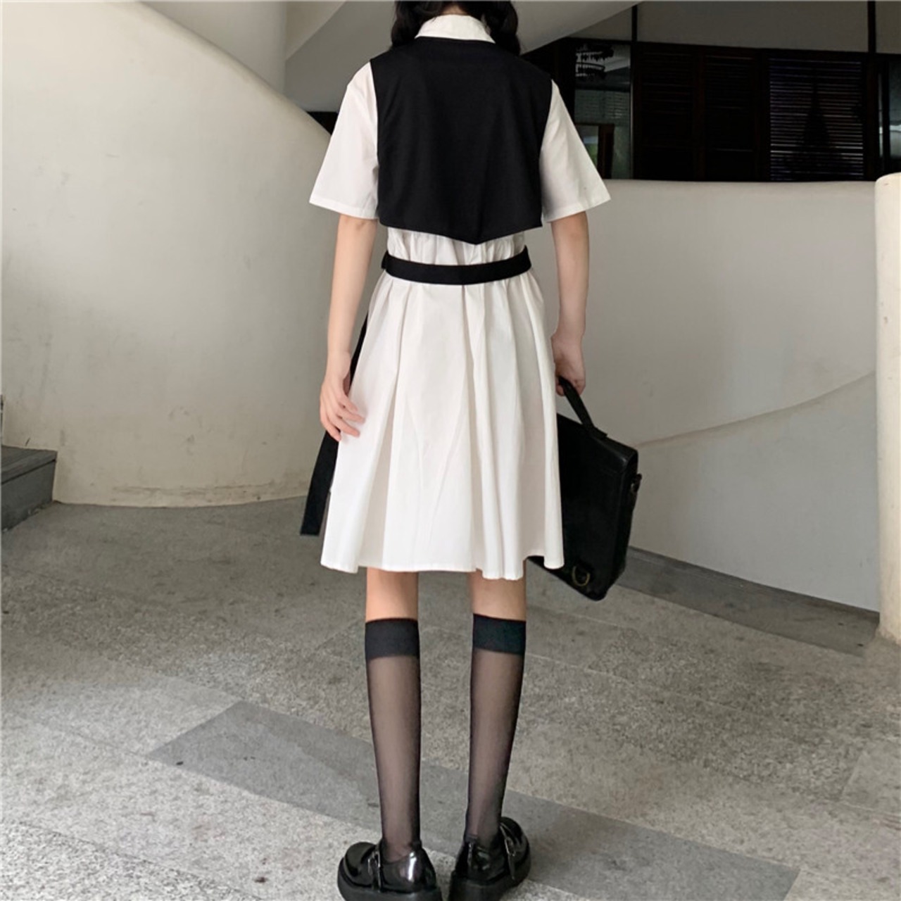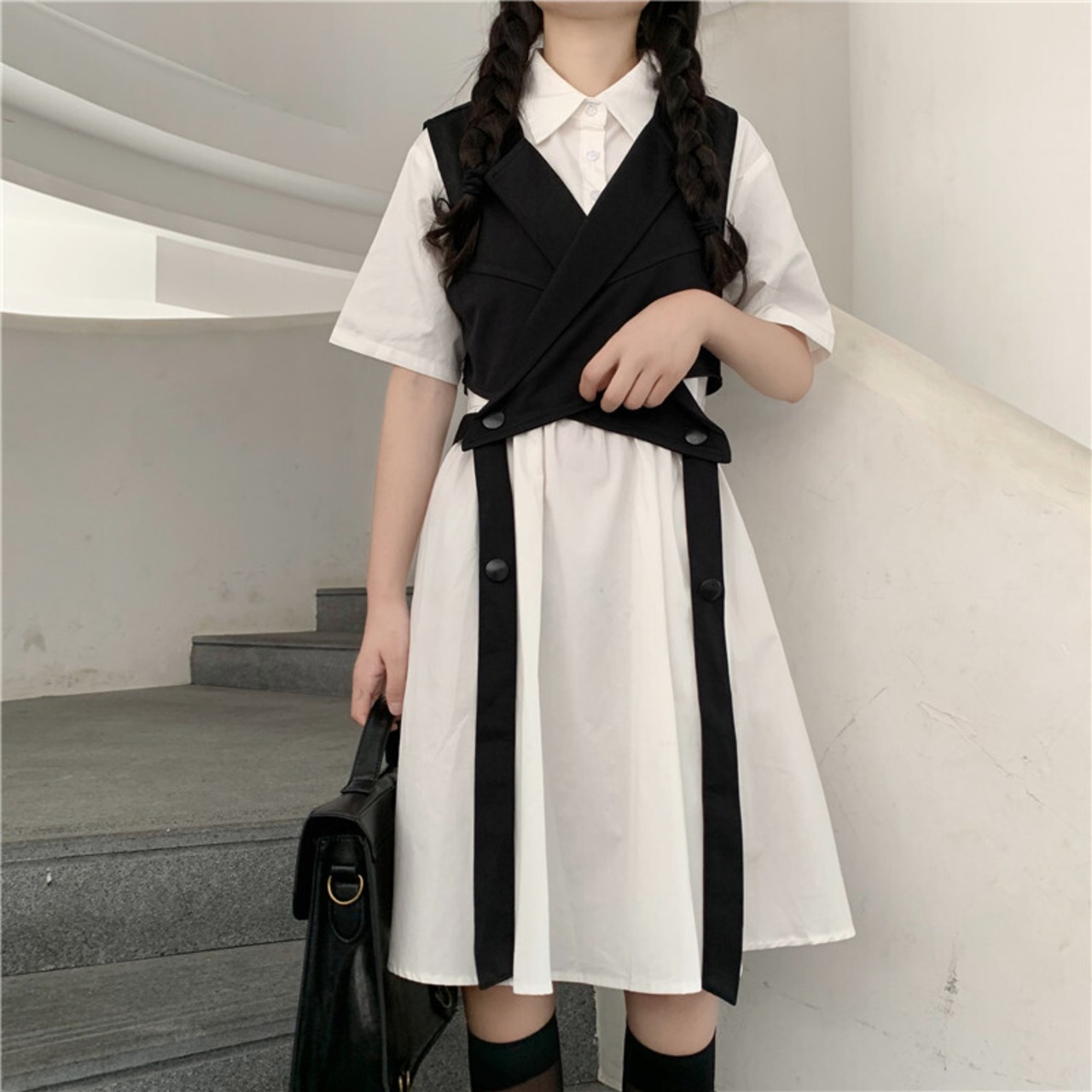 色:レースアップスーツチョッキワンピース,白いワンピース