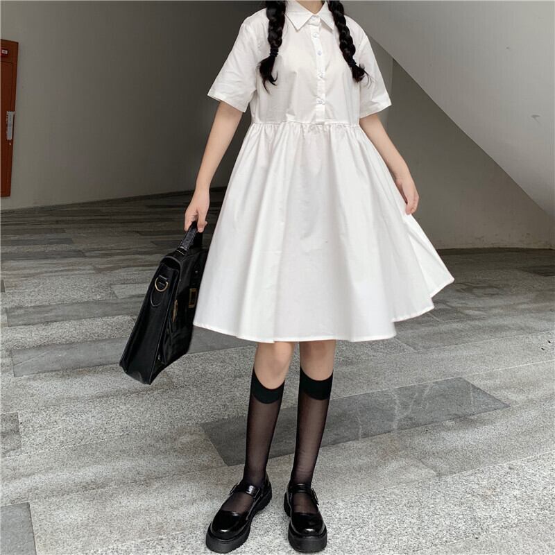 スタンダードショート ショート丈 ミニ ミニ丈カラーソリッド シャツ ドレス ワンピース レトロ レース レースアップ ソリッドカラー 女性 レディース ゆめかわ84861654975 | nice import1