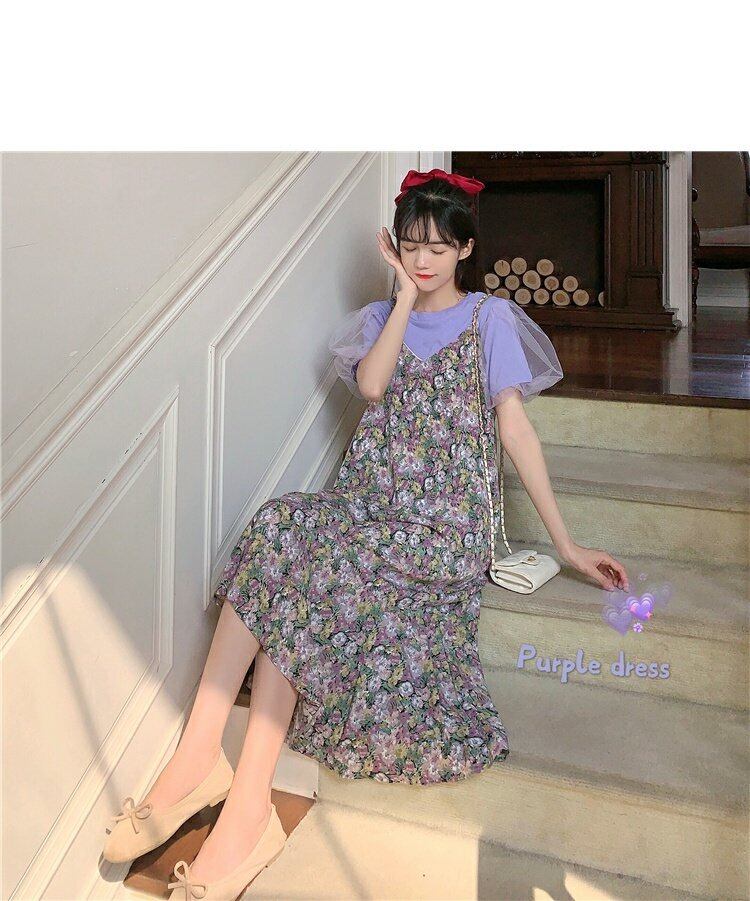 色:ピンクT,パープルT,ピンクの花柄スカート,パープルフローラルスカート