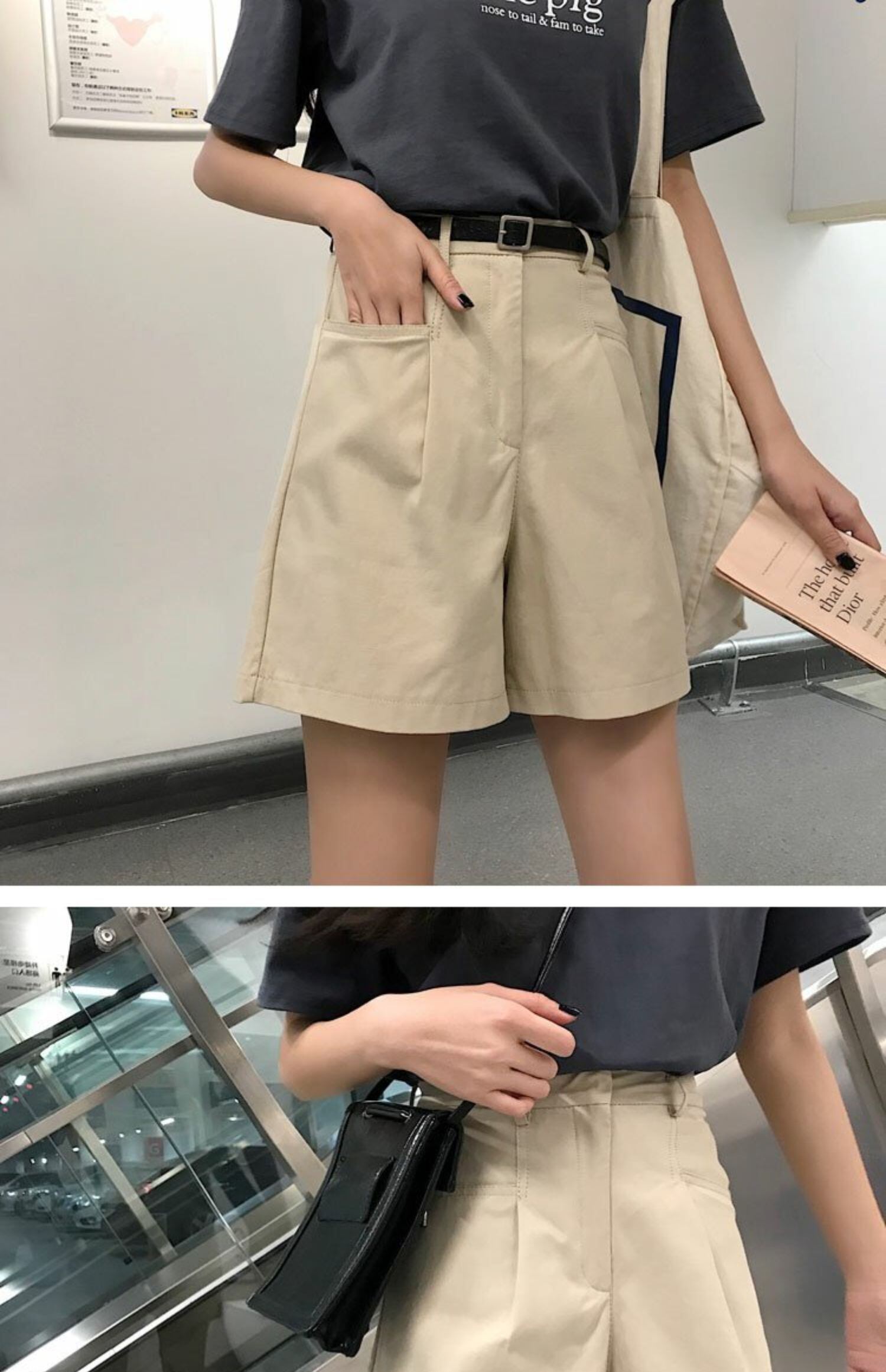 ベージュパンツ ウエストルーズ薄手ショーツ ベルト ショート ショート丈 ミニ ミニ丈 ハーネス ブルマー ワイドレッグ ワイドパンツ 女性 レディース ガーリー19180838710 | nice import1