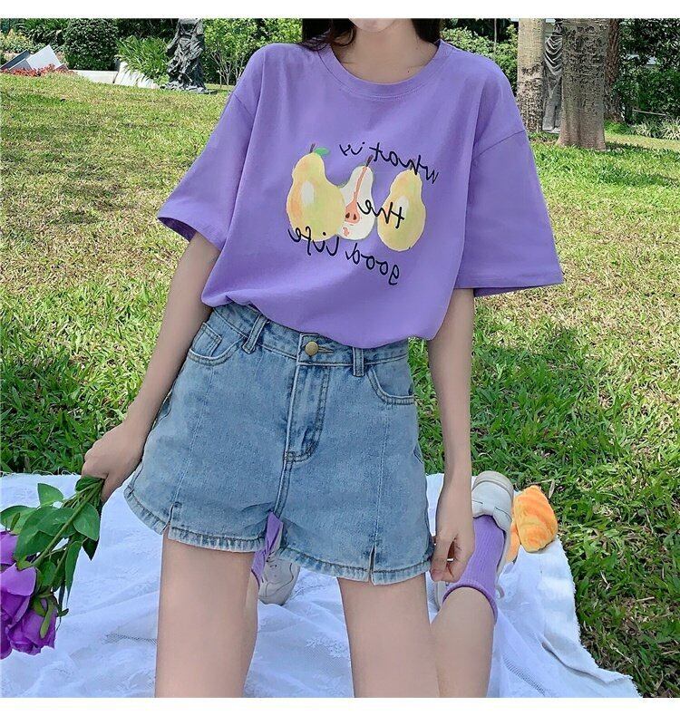 ブルー 青Tシャツ シャツ プリントラウンドネックルーズホワイト 白 かわいい 可愛い ガーリー 大人可愛い 大人かわいい フェミニン 大人ガーリー 女性 レディース ガーリー33451992873 | nice import1