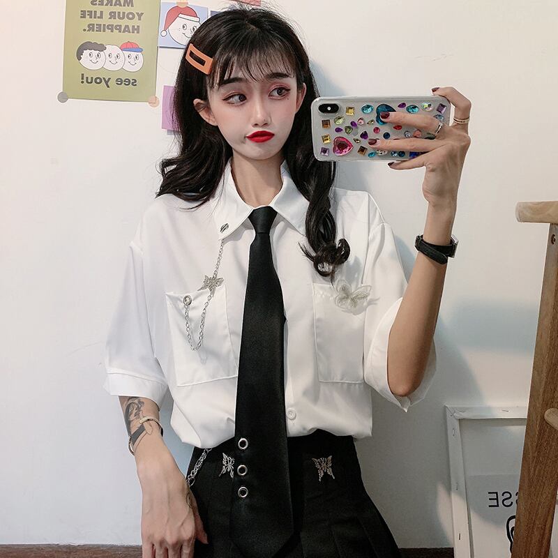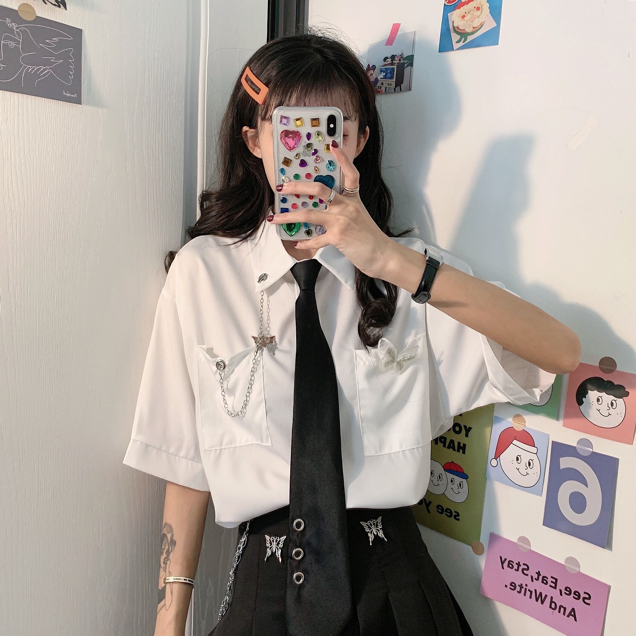 ルーズカラーレッド 赤バタフライ 蝶々 ちょうちょ アゲハチェーン シャツ ショート ショート丈 ミニ ミニ丈 ペンダント 女性 レディース ゆめかわ73877994069 | nice import1