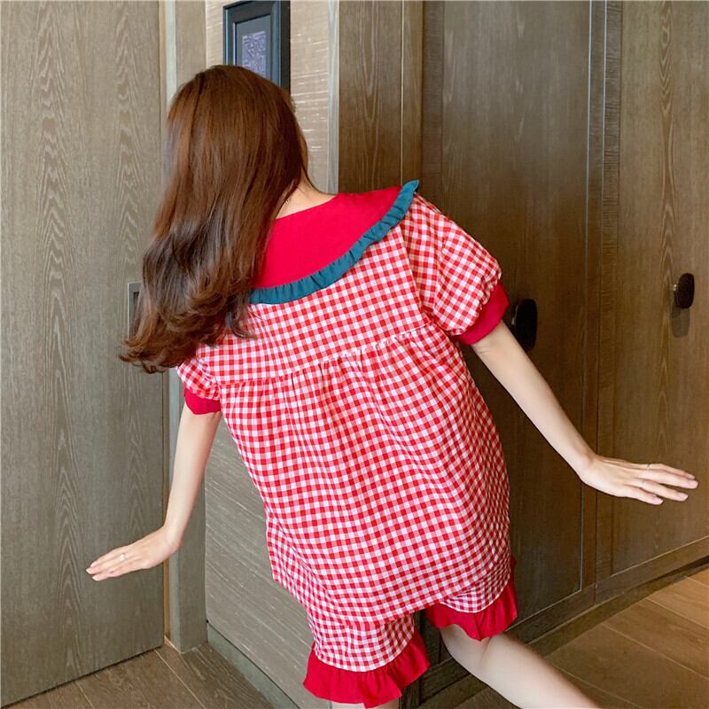 カラー半袖 半そでスリーブ 袖格子柄 チェックラッフル フリルショーツ ショート ショート丈 ミニ ミニ丈 ハーフスリーブ かわいい 可愛い ガーリー 大人可愛い 大人かわいい フェミニン 大人ガーリー ブルマー 女性 レディース ゆめかわ12663669076 | nice import1