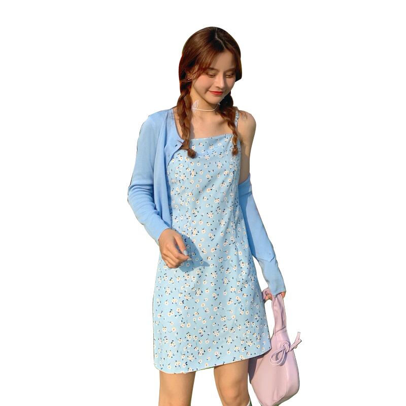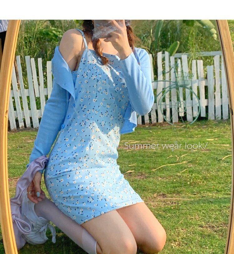 色:ベビーブルーキャミソール,ニットカーディガン,ホワイトT