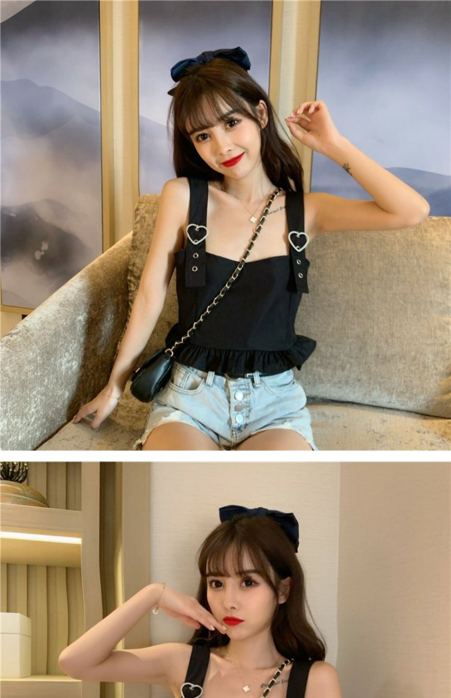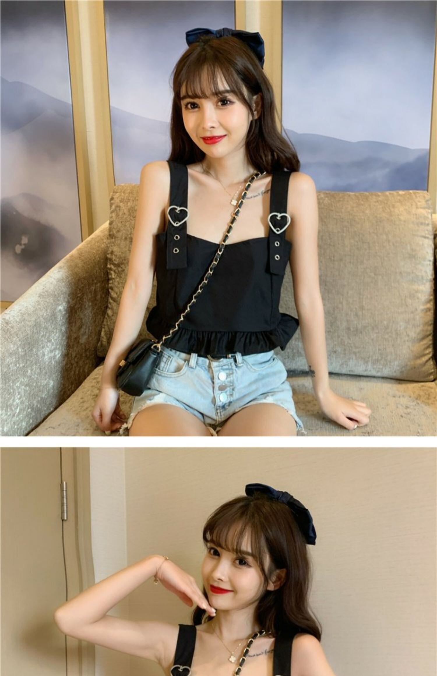 ハートバックルVネックドレス ワンピースブラック 黒ノースリーブコート かわいい 可愛い ガーリー 大人可愛い 大人かわいい フェミニン 大人ガーリー 袖なし 女性 レディース ガーリー68209210508 | nice import1