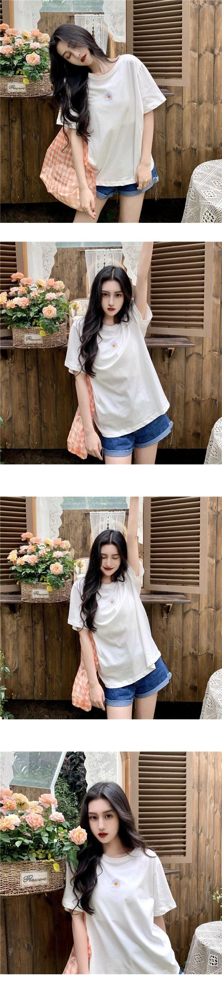 トップス ルーズレッド 赤シャツ 刺繍半袖 半そでスリーブ 袖カラーTシャツ レディース ショート ショート丈 ミニ ミニ丈 ハーフスリーブ パープル 女性 レディース ガーリー49328604289 | nice import1