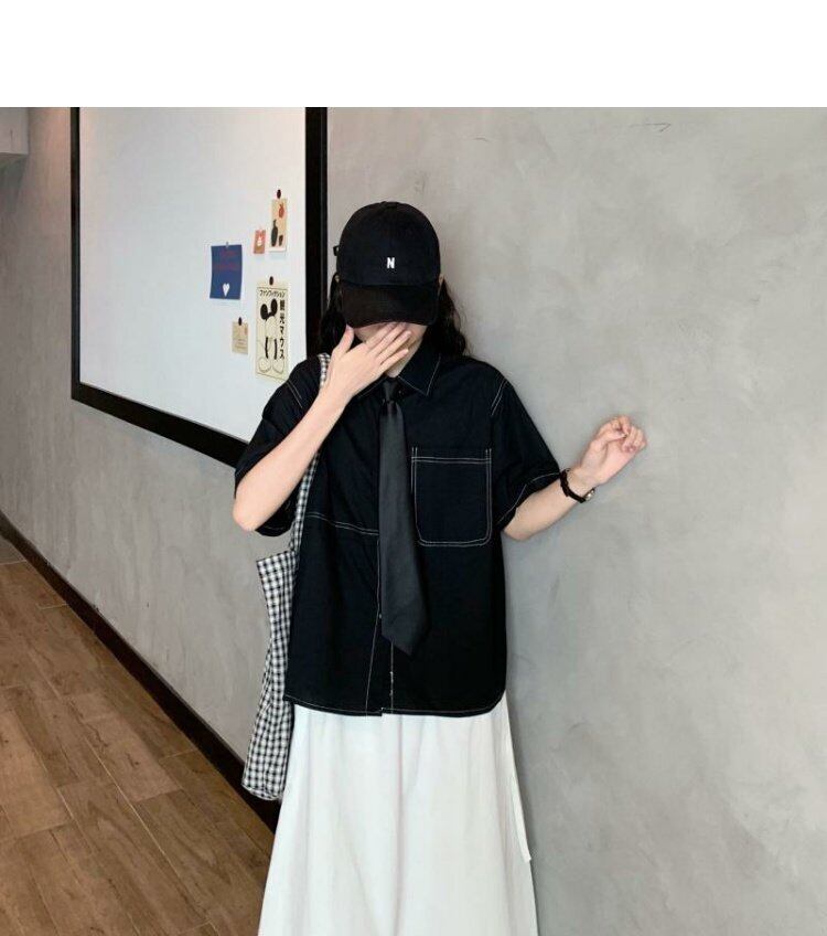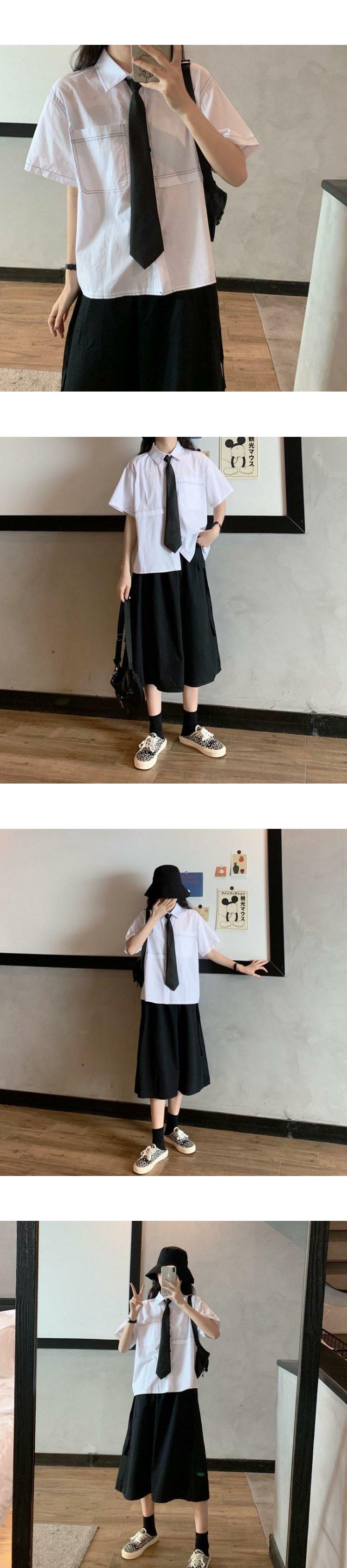 色:ネクタイ付きブラックトップ,ネクタイ付きホワイトトップ,ネクタイ付きパープルトップ,白いスカート,黒スカート