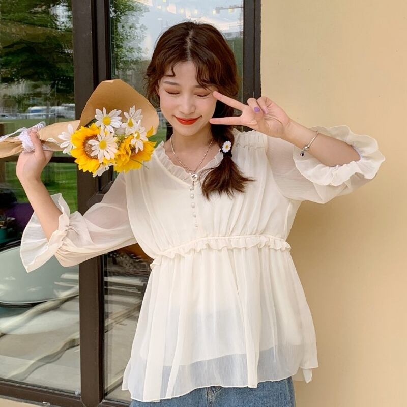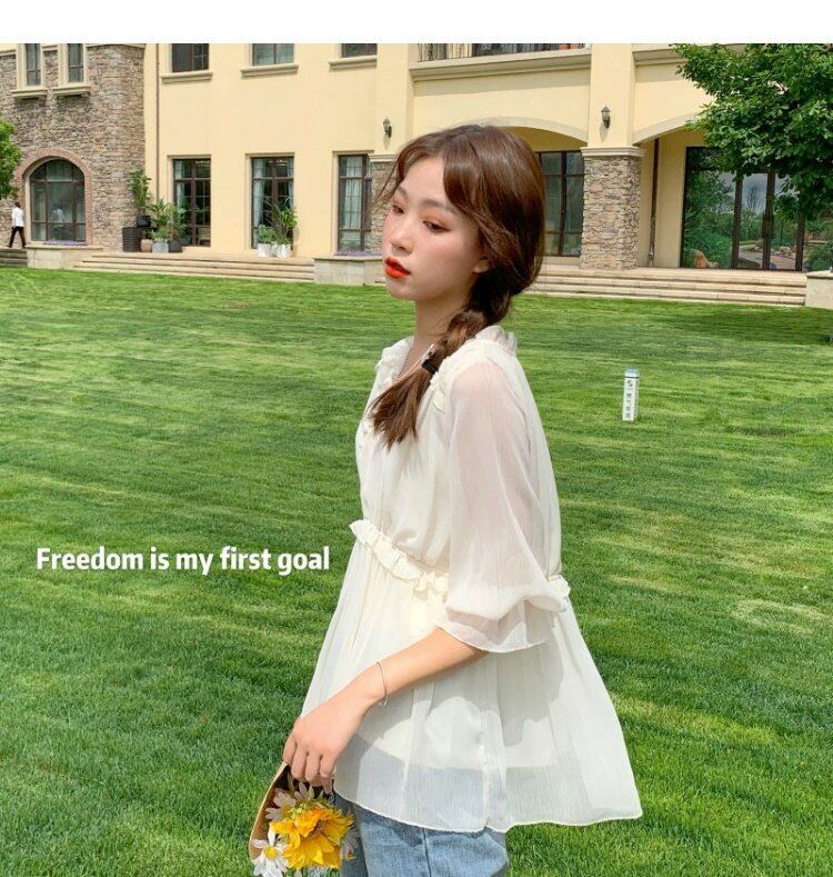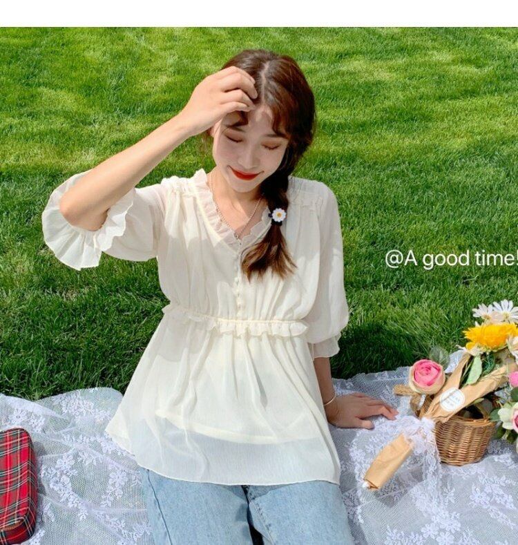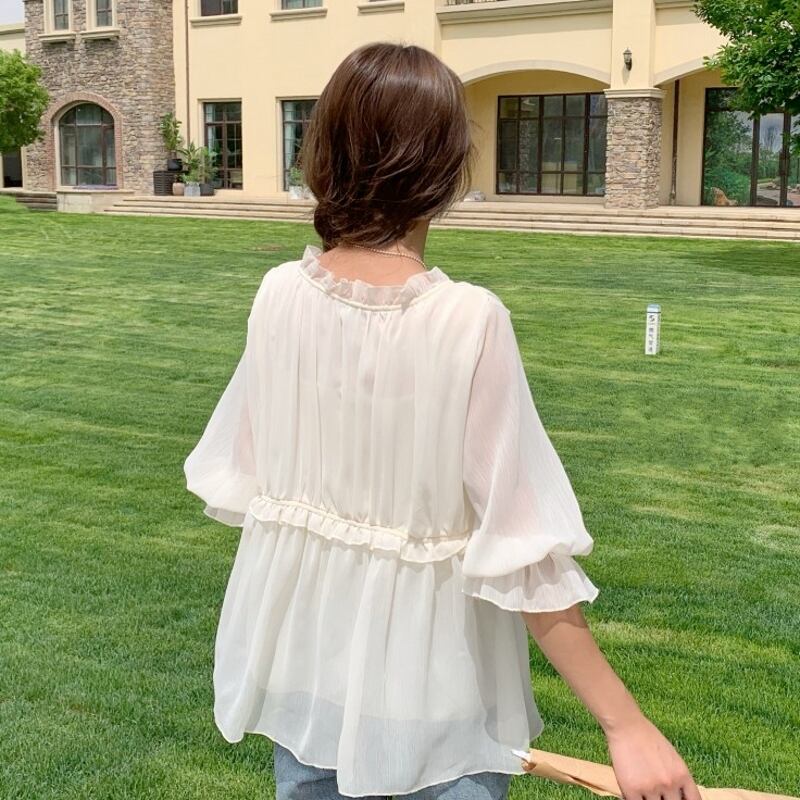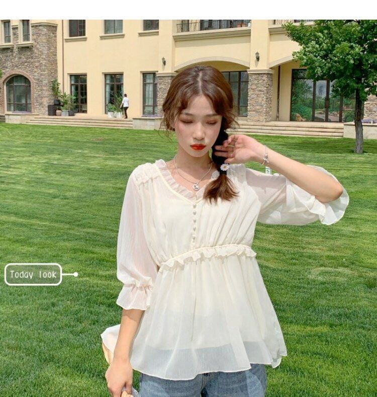 スリーブ 袖トップス Vネックシフォンシャツ 半袖 半そでレディース ショート ショート丈 ミニ ミニ丈 ハーフスリーブ 女性 レディース ガーリー97188753431 | nice import1