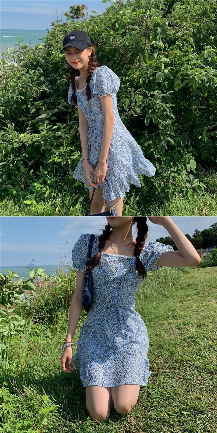 レーススタイルスタンダード花柄 お花 フラワーカラーウエストクロススリーブ 袖ドレス ワンピース ランタンスリーブ バルーンスリーブ ランタン袖 バルーン袖 レトロ スクウェア スクエア 女性 レディース ゆめかわ27586818588 | nice import1