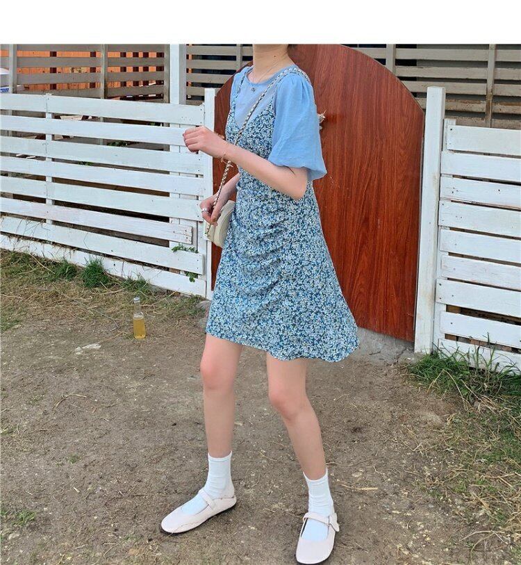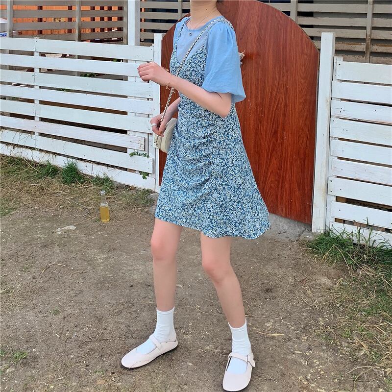 色:ブルートップ,ブルーフラワースカート