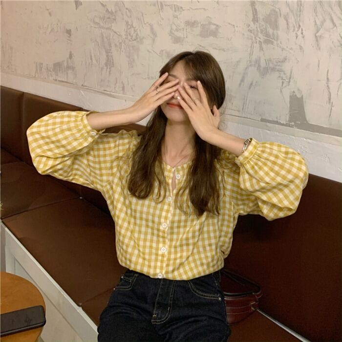 ラウンドネック格子柄 チェックシャツ ルーズ薄手スリーブ 袖ブラウス ロング マキシロング丈 マキシ丈 トップス かわいい 可愛い ガーリー 大人可愛い 大人かわいい フェミニン 大人ガーリー 女性 レディース ゆめかわ82134867958 | nice import1
