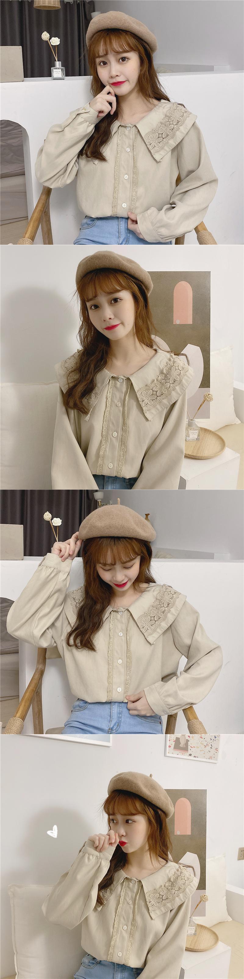 レースカラースタンダードスタイルシャツ ロング マキシロング丈 マキシ丈 レトロ かわいい 可愛い ガーリー 大人可愛い 大人かわいい フェミニン 大人ガーリー レースアップ 女性 レディース ゆめかわ37121945611 | nice import1