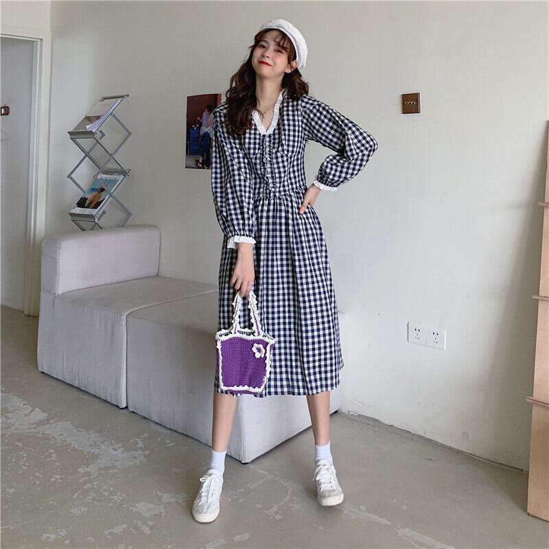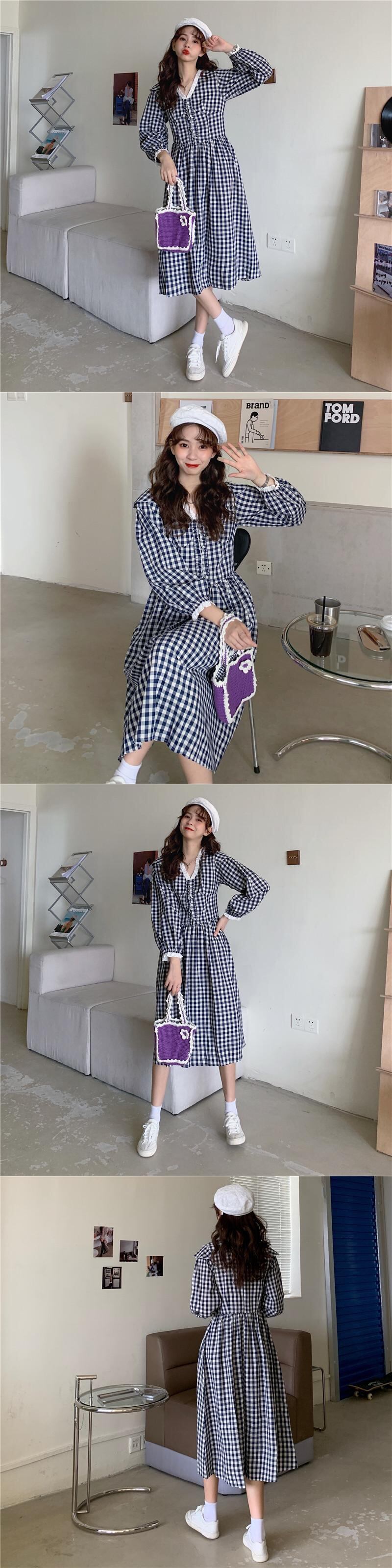 スカート スタイルVネックプリーツレース格子柄 チェックドレス ワンピース ロング マキシロング丈 マキシ丈 かわいい 可愛い ガーリー 大人可愛い 大人かわいい フェミニン 大人ガーリー ステッチ 女性 レディース ゆめかわ98077960951 | nice import1