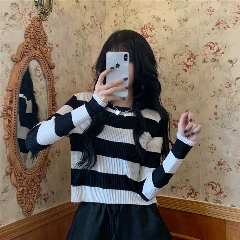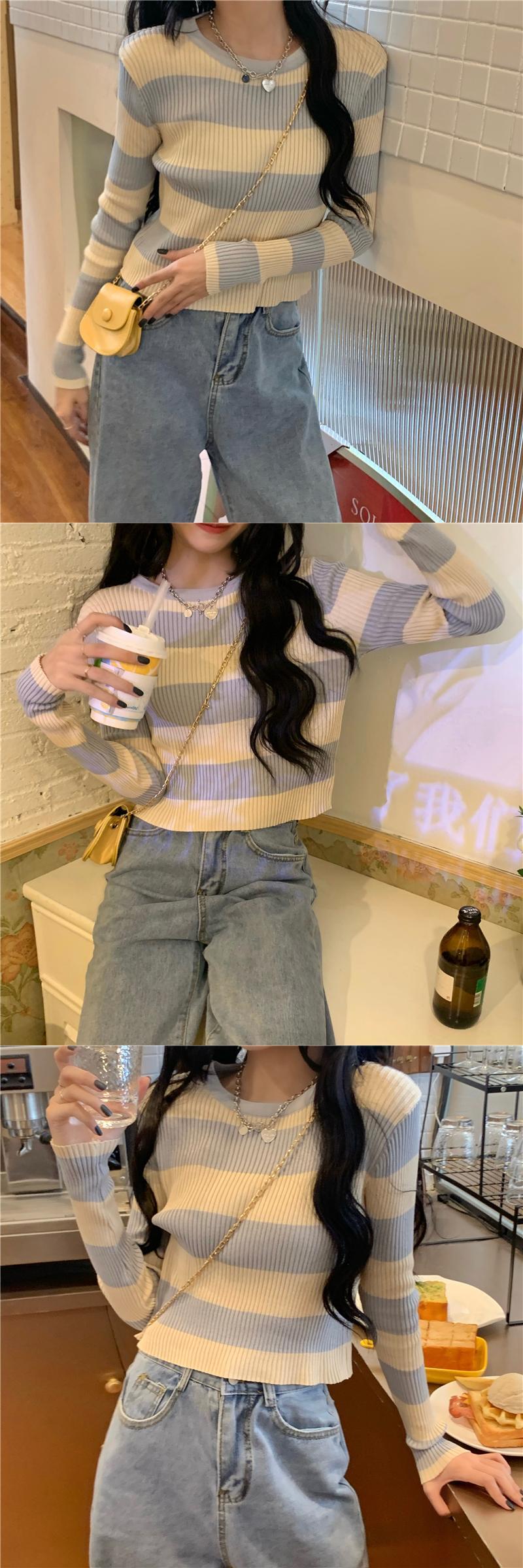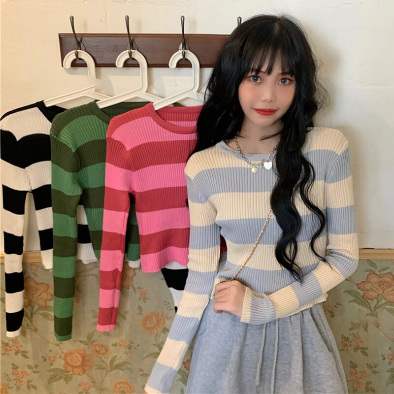 カラーストライプニット セーターショート ショート丈 ミニ ミニ丈プルオーバー スリムトップス レディース ロング マキシロング丈 マキシ丈 女性 レディース ゆめかわ93599575712 | nice import1