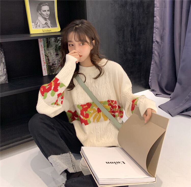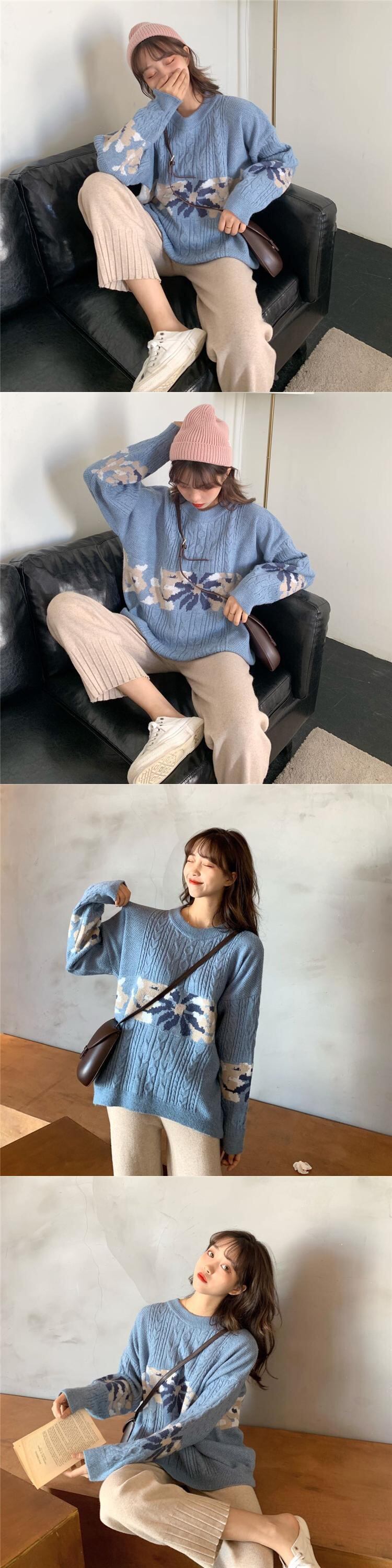 スタンダードプリントラウンドネックプルオーバー レディースニットトップス ロング マキシロング丈 マキシ丈 レトロ かわいい 可愛い ガーリー 大人可愛い 大人かわいい フェミニン 大人ガーリー 女性 レディース ゆめかわ7255174018 | nice import1