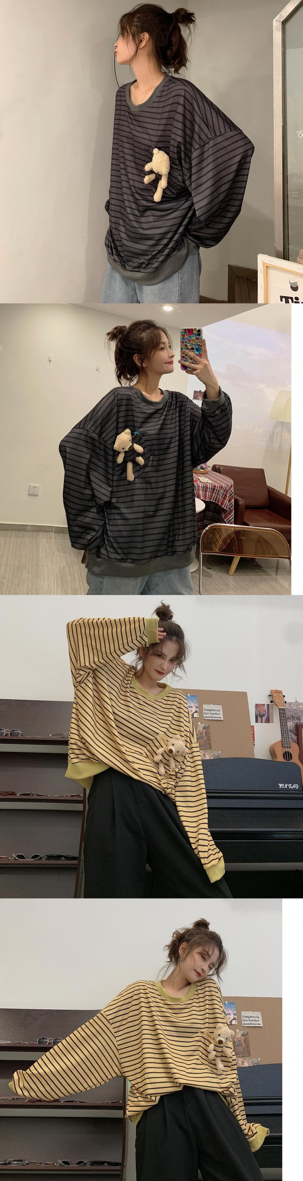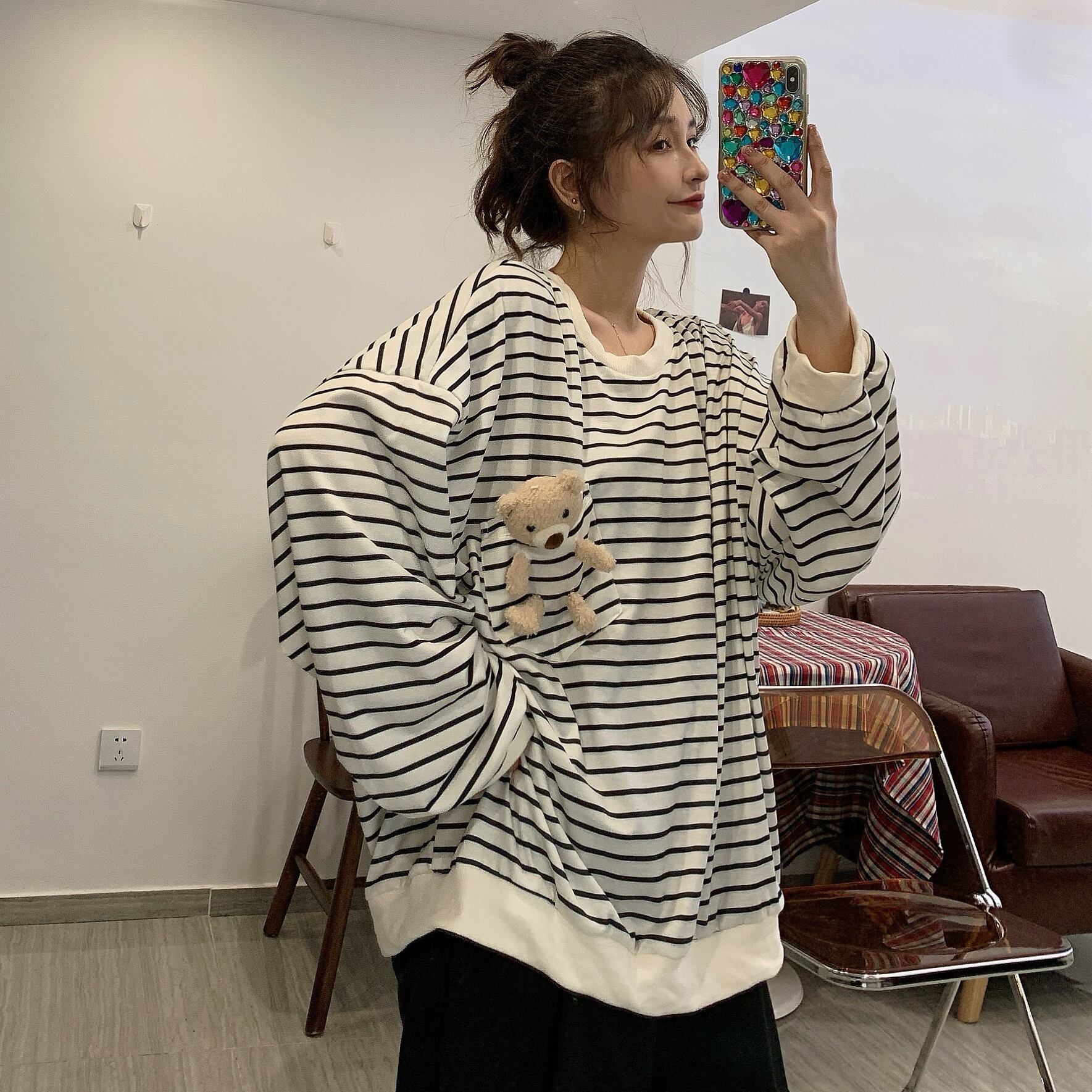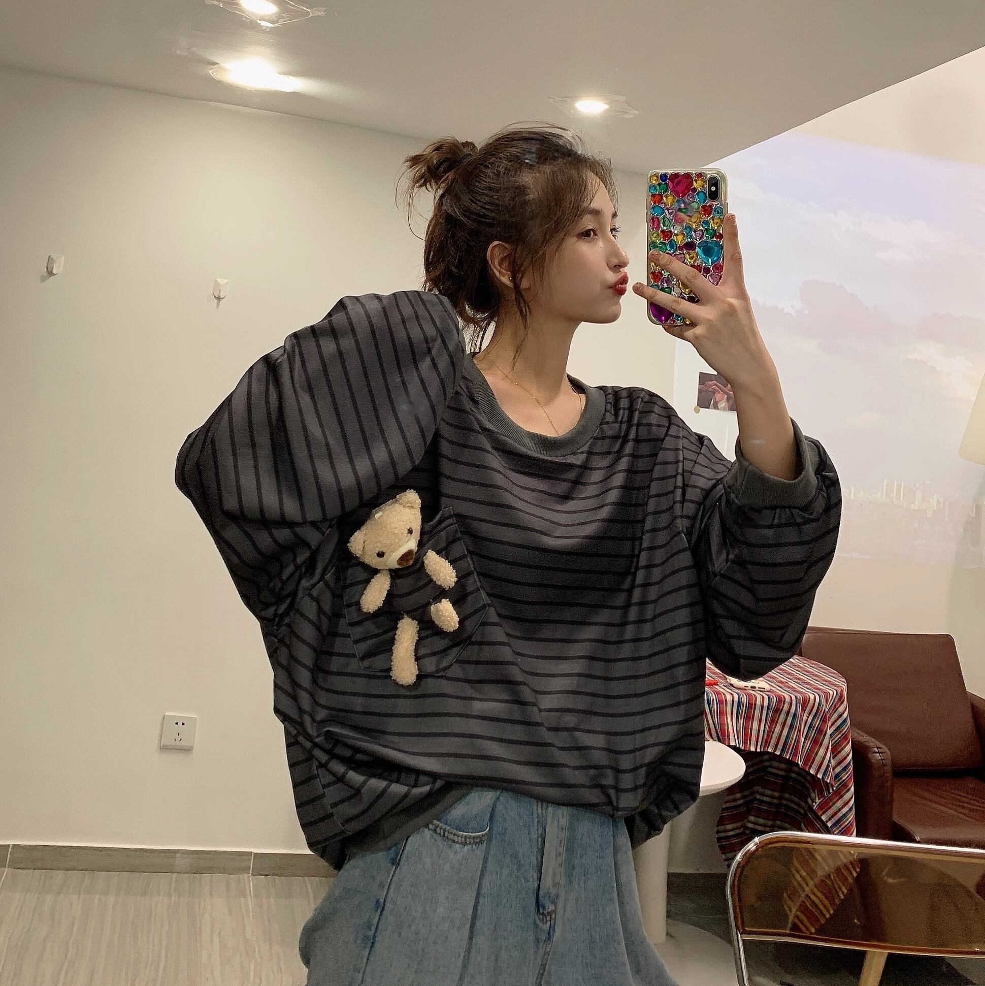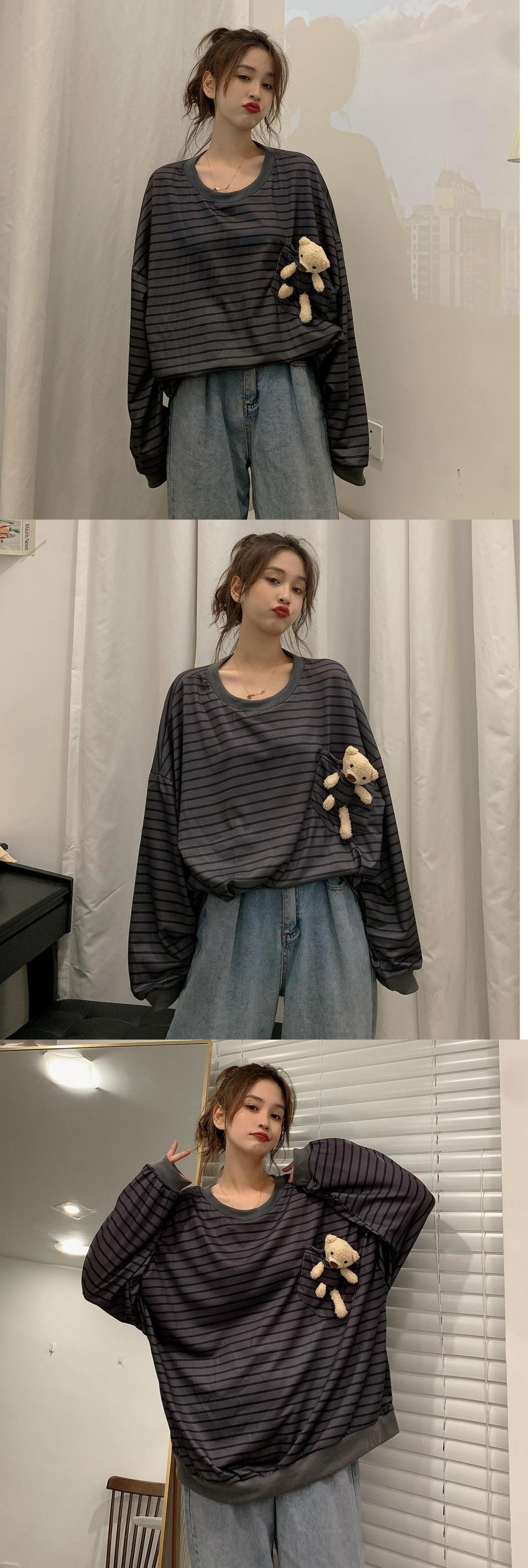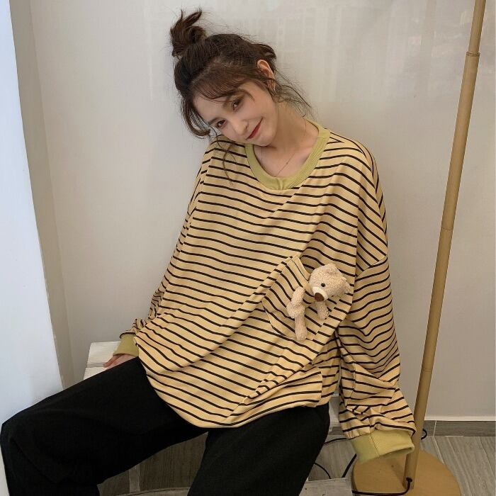 スタイルルーズ薄手ストライプポケットラウンドネック長袖 長そでスリーブ 袖ニット セーターレディース ロング マキシロング丈 マキシ丈 女性 レディース ゆめかわ68687889805 | nice import1