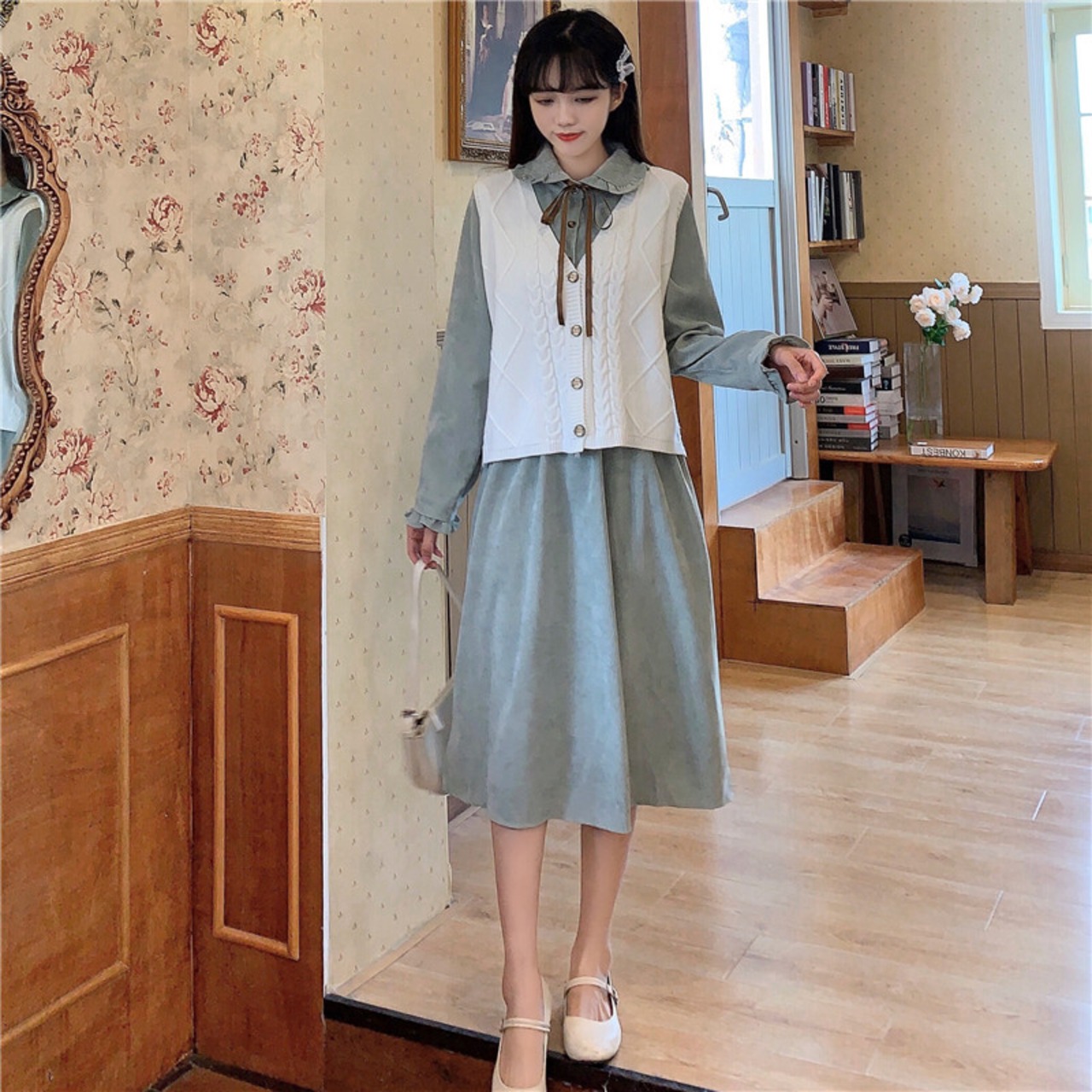 色:白いベストワンピース,ライトブルーワンピース,緑のワンピース