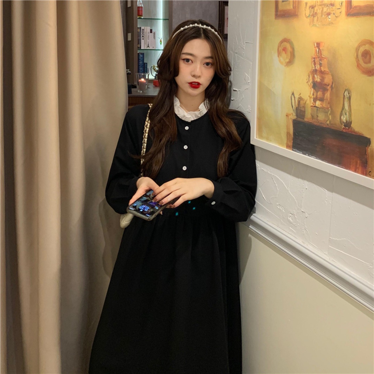 ドレス ワンピースラウンドネックロング マキシ ロング丈 マキシ丈ハイウエストウエストカラーブラック 黒 ハイウェスト マキシロング丈 長袖 長そで かわいい 可愛い ガーリー 大人可愛い 大人かわいい フェミニン 大人ガーリー 女性 レディース ゆめかわ40510214791 | nice import1