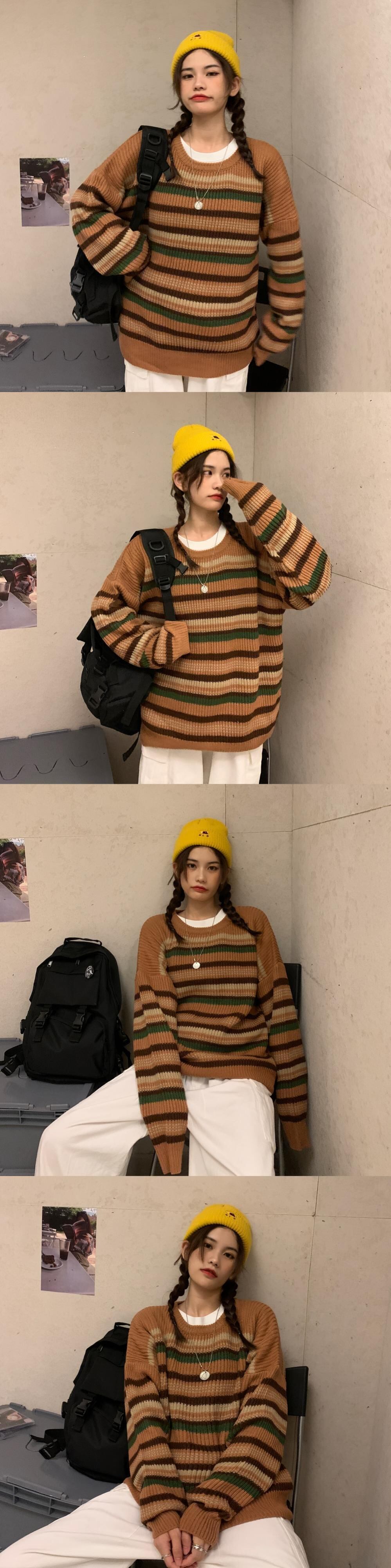 スタイルスタンダードストライプカラーニットニット セータールーズ薄手ブラウス レディース ロング マキシロング丈 マキシ丈 レトロ シャツ トップス 女性 レディース ゆめかわ48782952516 | nice import1