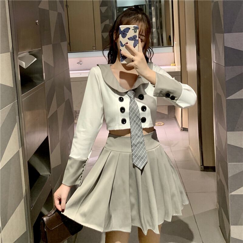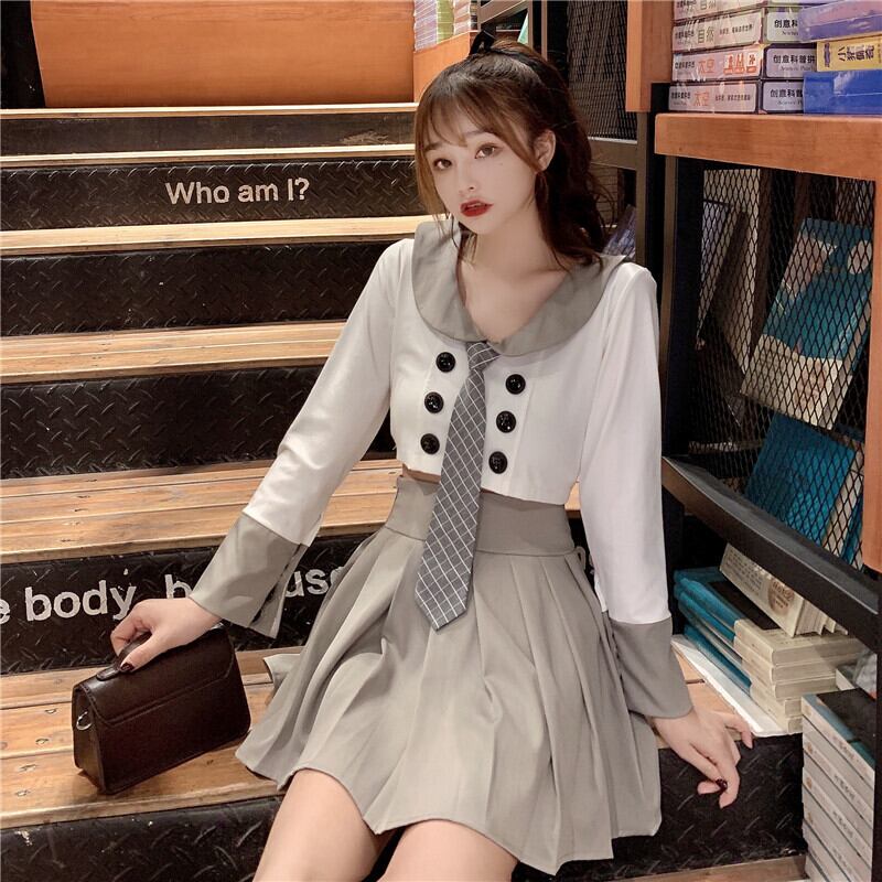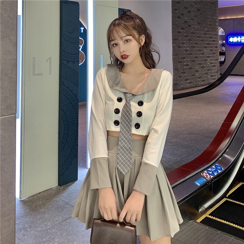 色:トップ+ネクタイ,ワンピーススカート