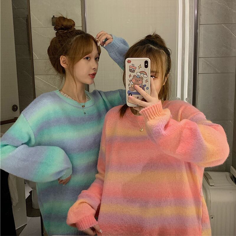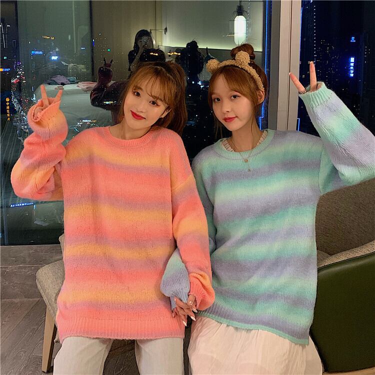 ストライプニット セータールーズラウンドネックニットレディース ロング マキシロング丈 マキシ丈 かわいい 可愛い ガーリー 大人可愛い 大人かわいい フェミニン 大人ガーリー 女性 レディース ゆめかわ25131125659 | nice import1