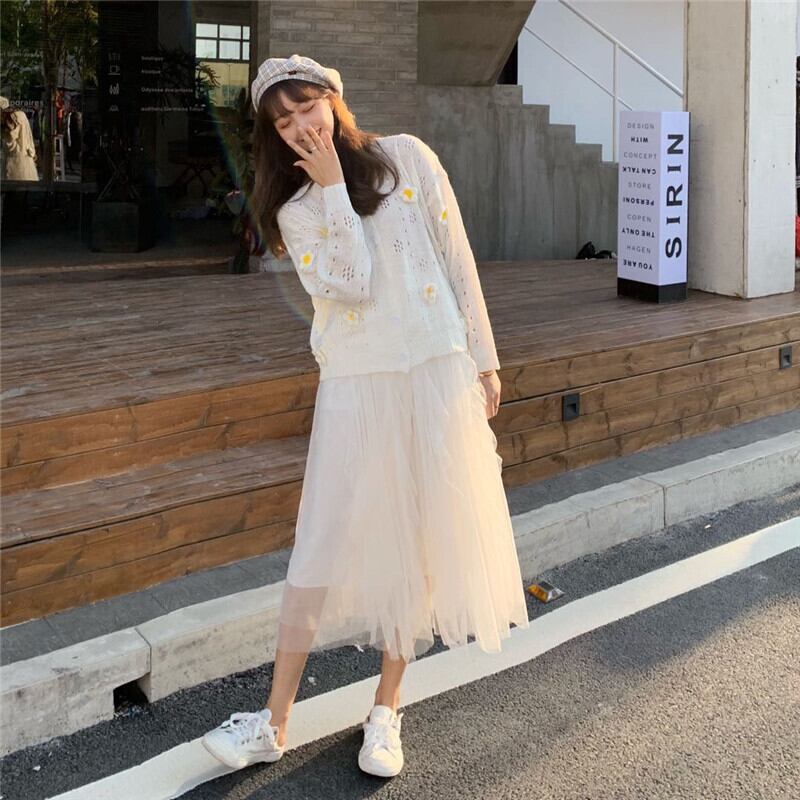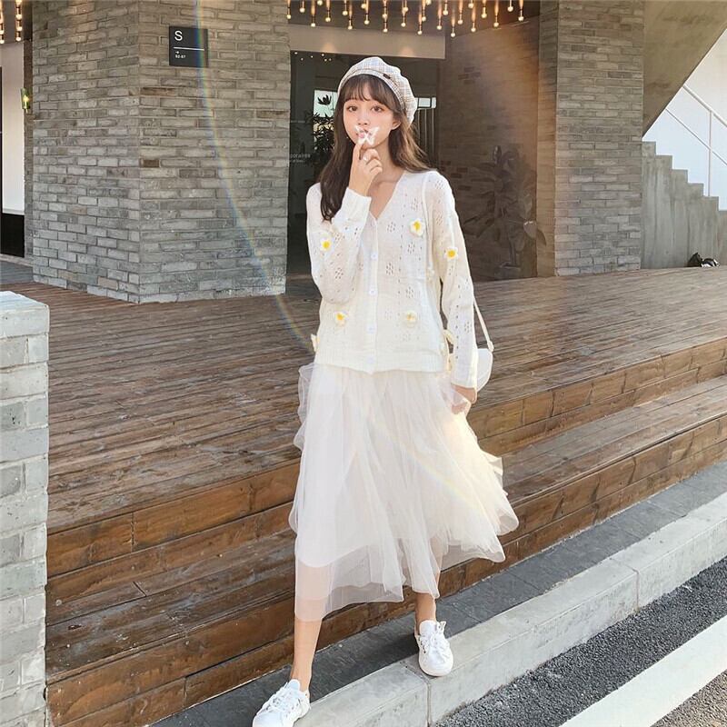 色:フラワーカーディガンセーターワンピース,メッシュスカートワンピース