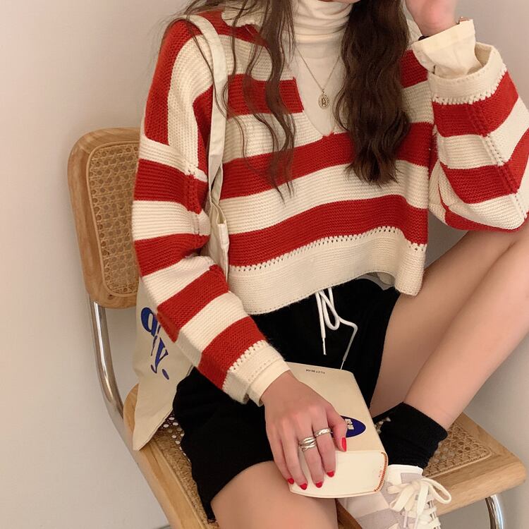 スタイルスタンダードストライプニットトップス ルーズショート ショート丈 ミニ ミニ丈Vネックプルオーバー レディース ロング マキシロング丈 マキシ丈 レトロ かわいい 可愛い ガーリー 大人可愛い 大人かわいい フェミニン 大人ガーリー 女性 レディース ゆめかわ30017174834 | nice import1