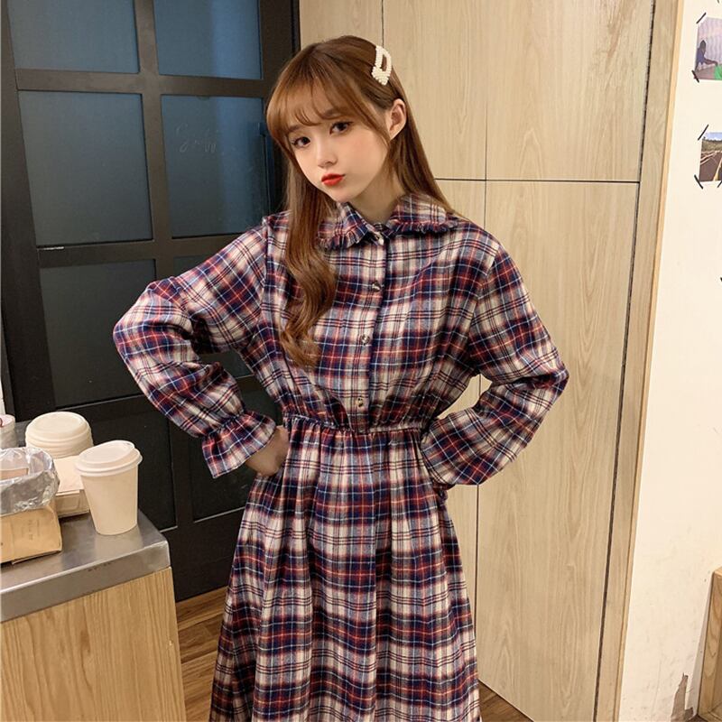 スタンダードカラー格子柄 チェックストレッチウエストドレス ワンピース ロング マキシロング丈 マキシ丈 レトロ エラスティック 伸縮 女性 レディース ゆめかわ49294413960 | nice import1