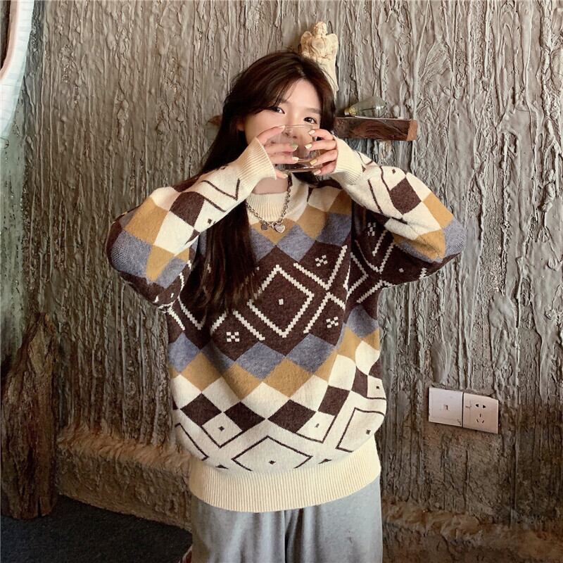スタンダードスタイルルーズブラウス カラー長袖 長そでスリーブ 袖ニットニット セーターレディース ロング マキシロング丈 マキシ丈 レトロ シャツ トップス 女性 レディース ゆめかわ96528945657 | nice import1