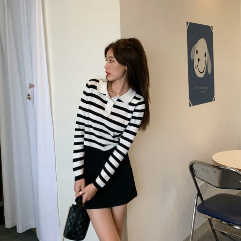 スタンダードストライプシャツ ショート ショート丈 ミニ ミニ丈プルオーバー ニット セーター ロング マキシロング丈 マキシ丈 レトロ 女性 レディース ゆめかわ4497119931 | nice import1