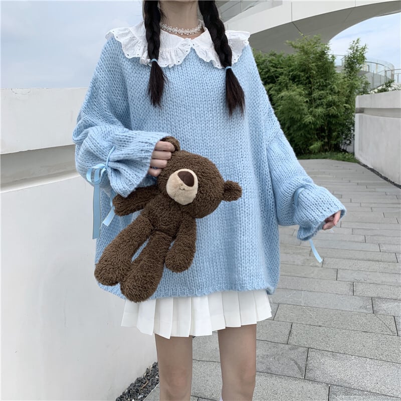 ニット セーターラウンドネック長袖 長そでスリーブ 袖ブルー 青ニットトップス ロング マキシロング丈 マキシ丈 かわいい 可愛い ガーリー 大人可愛い 大人かわいい フェミニン 大人ガーリー 女性 レディース ゆめかわ64380674435 | nice import1